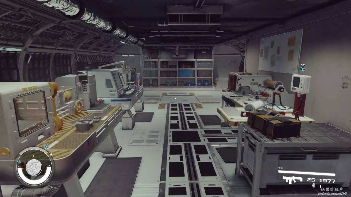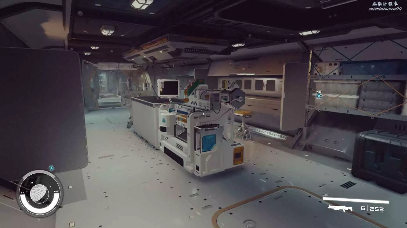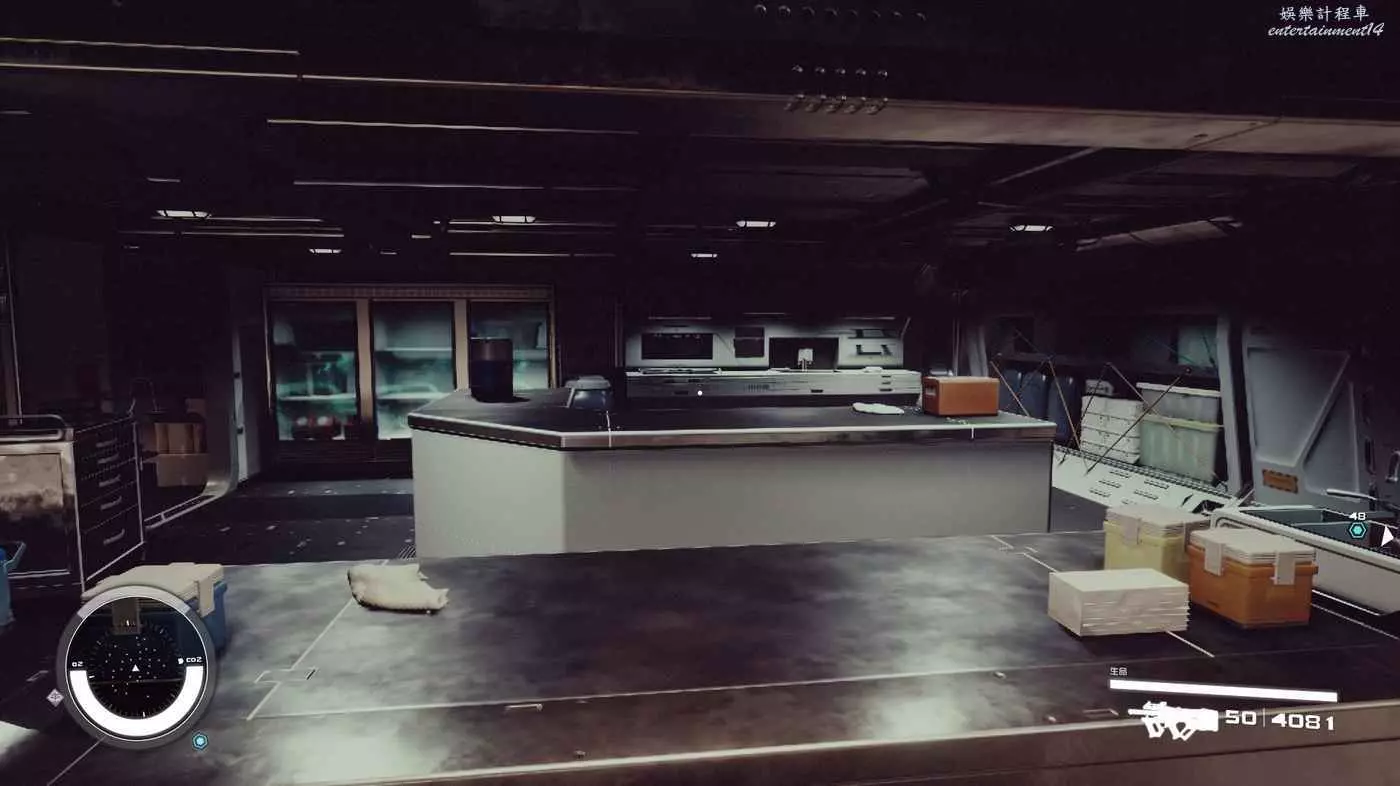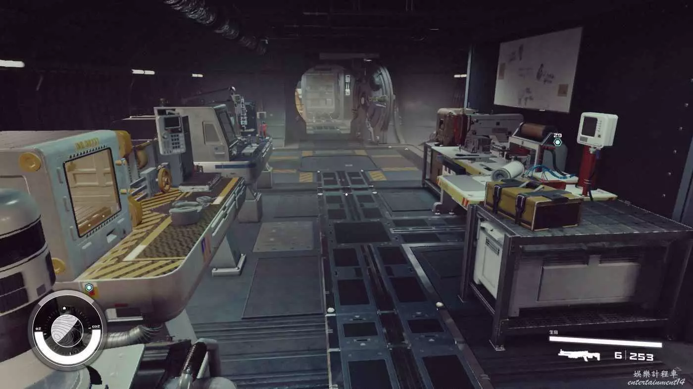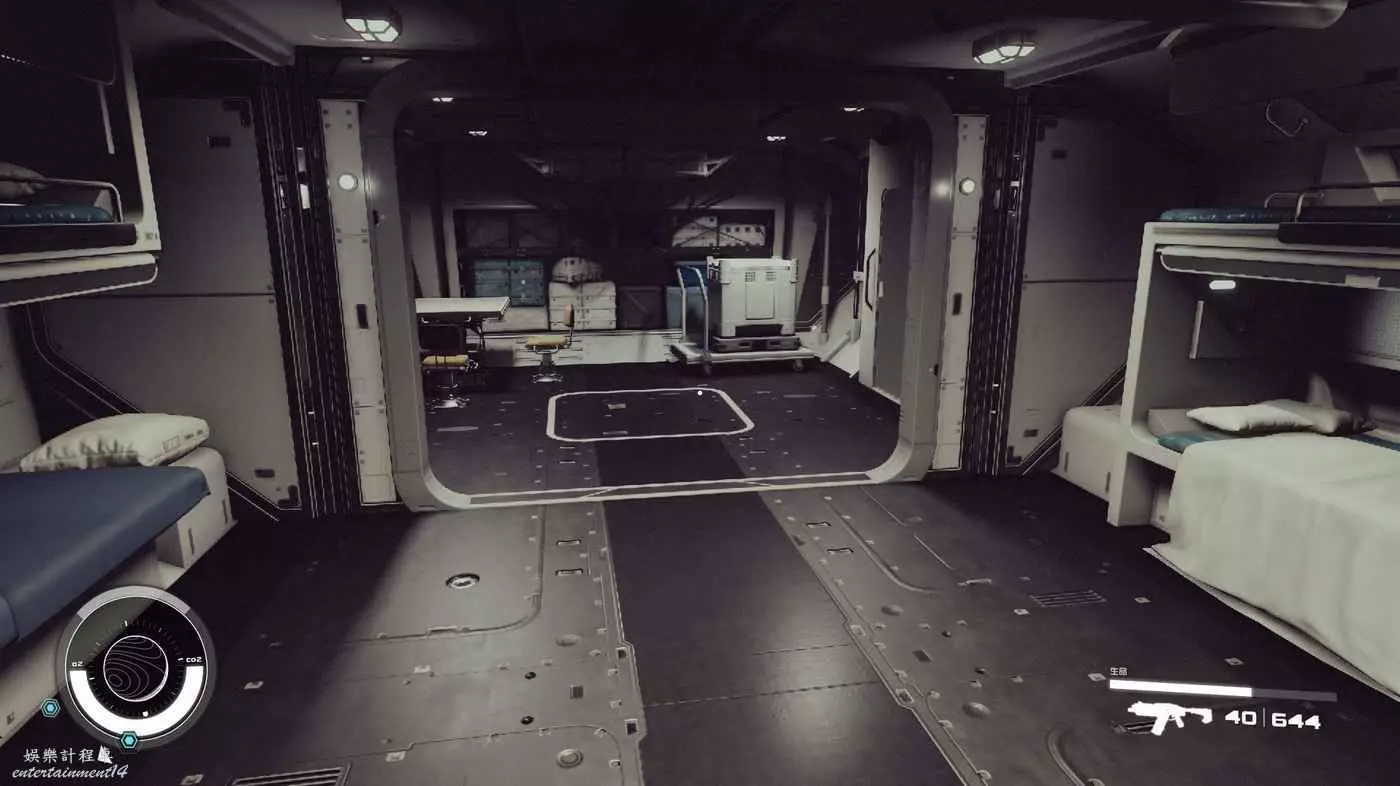 有一些盒子櫃子,然後就是醫務工作台和科研台。玩家並不能用床。