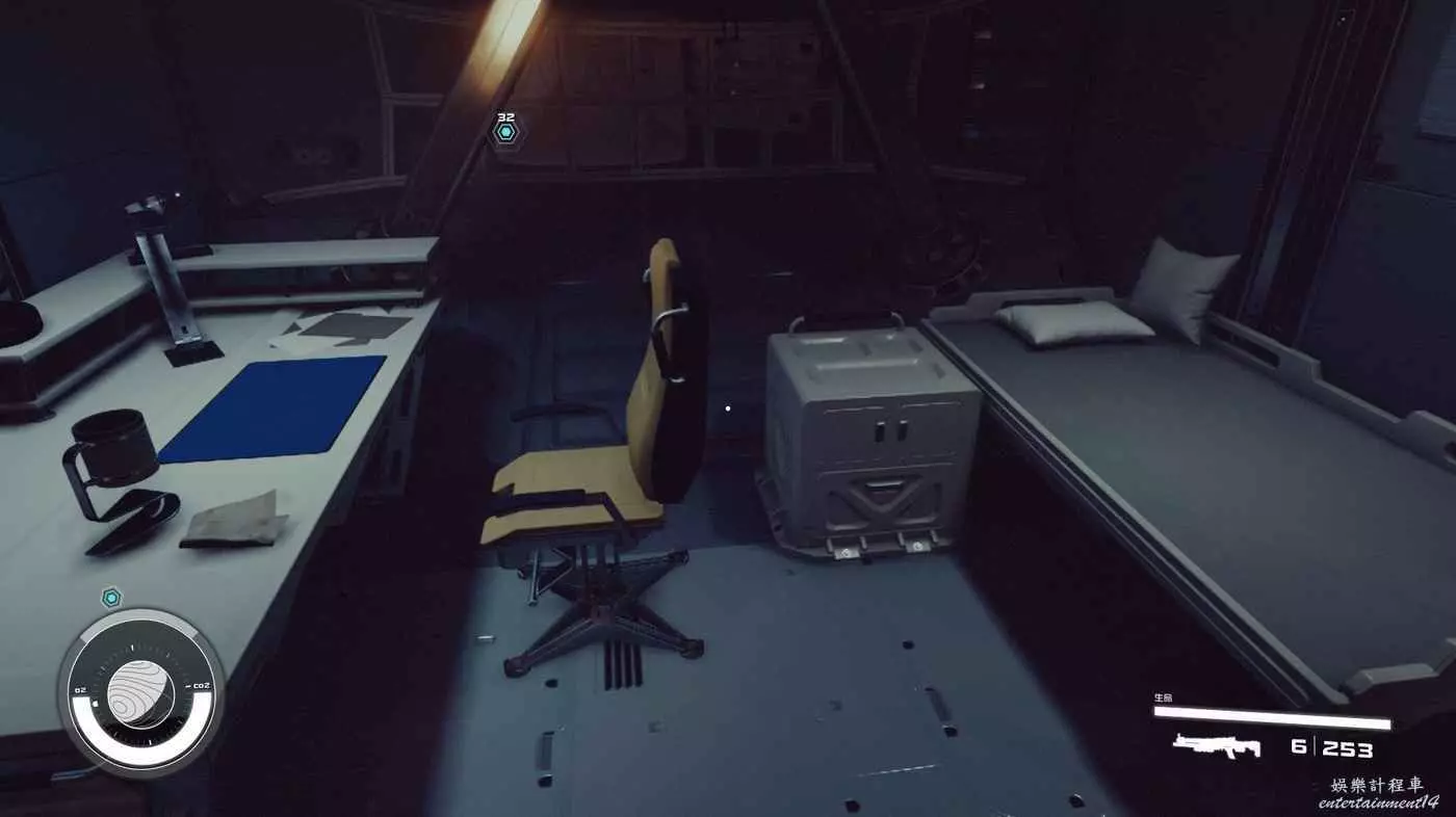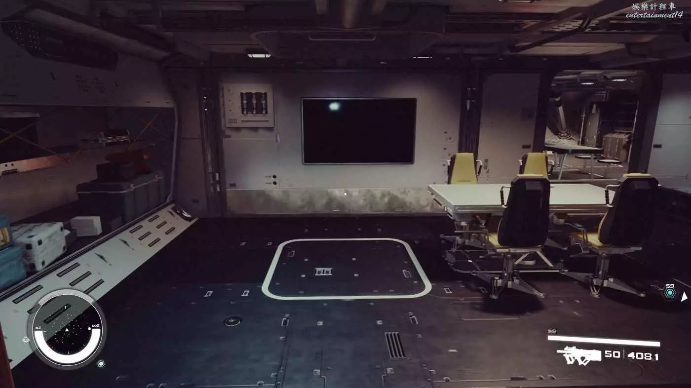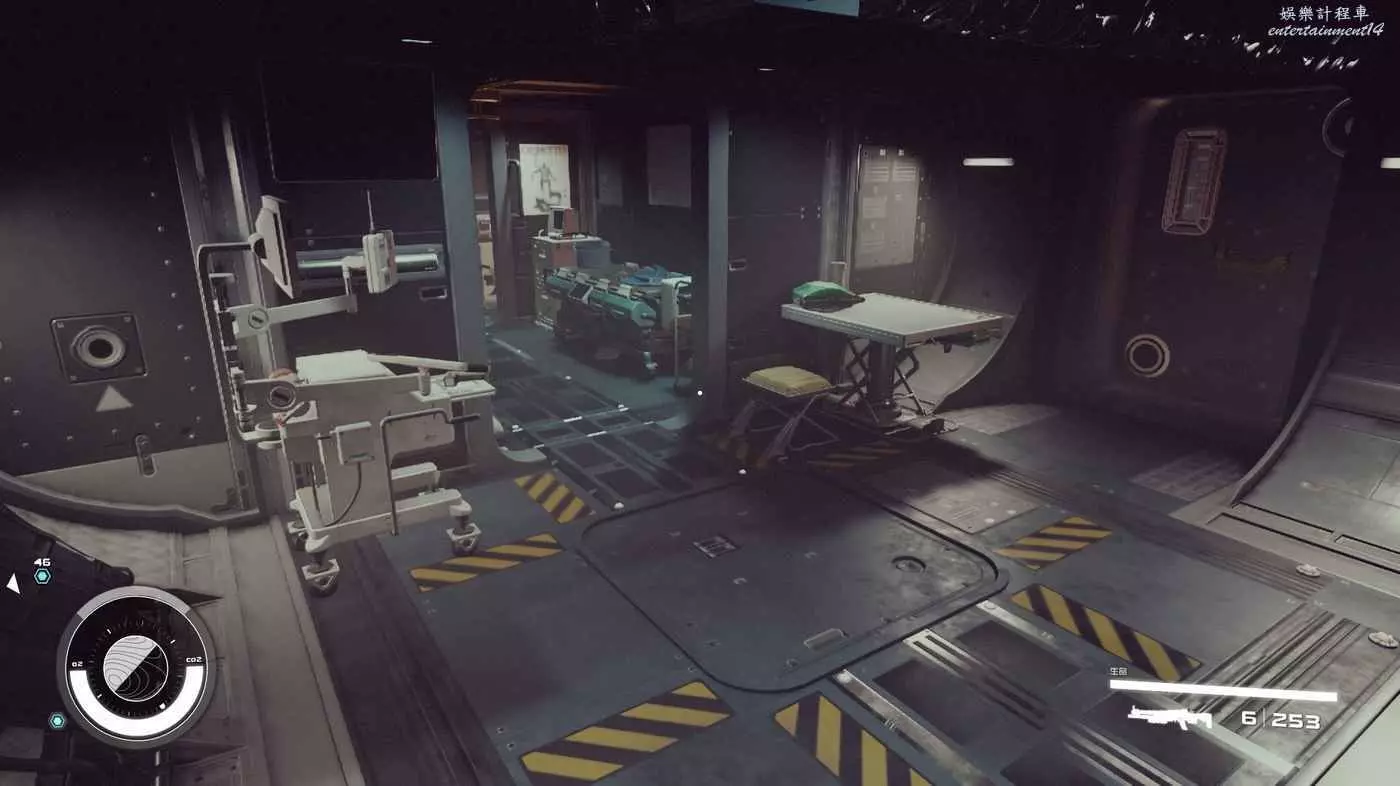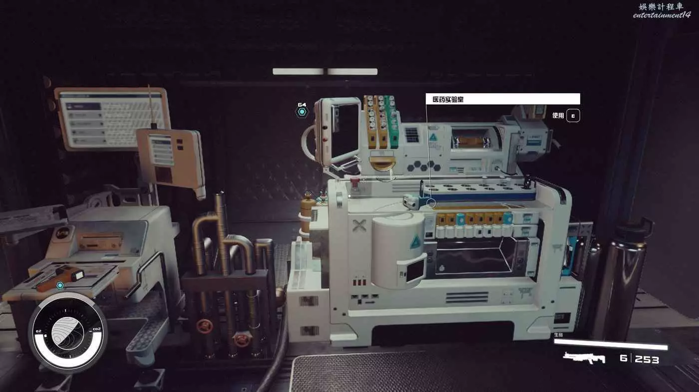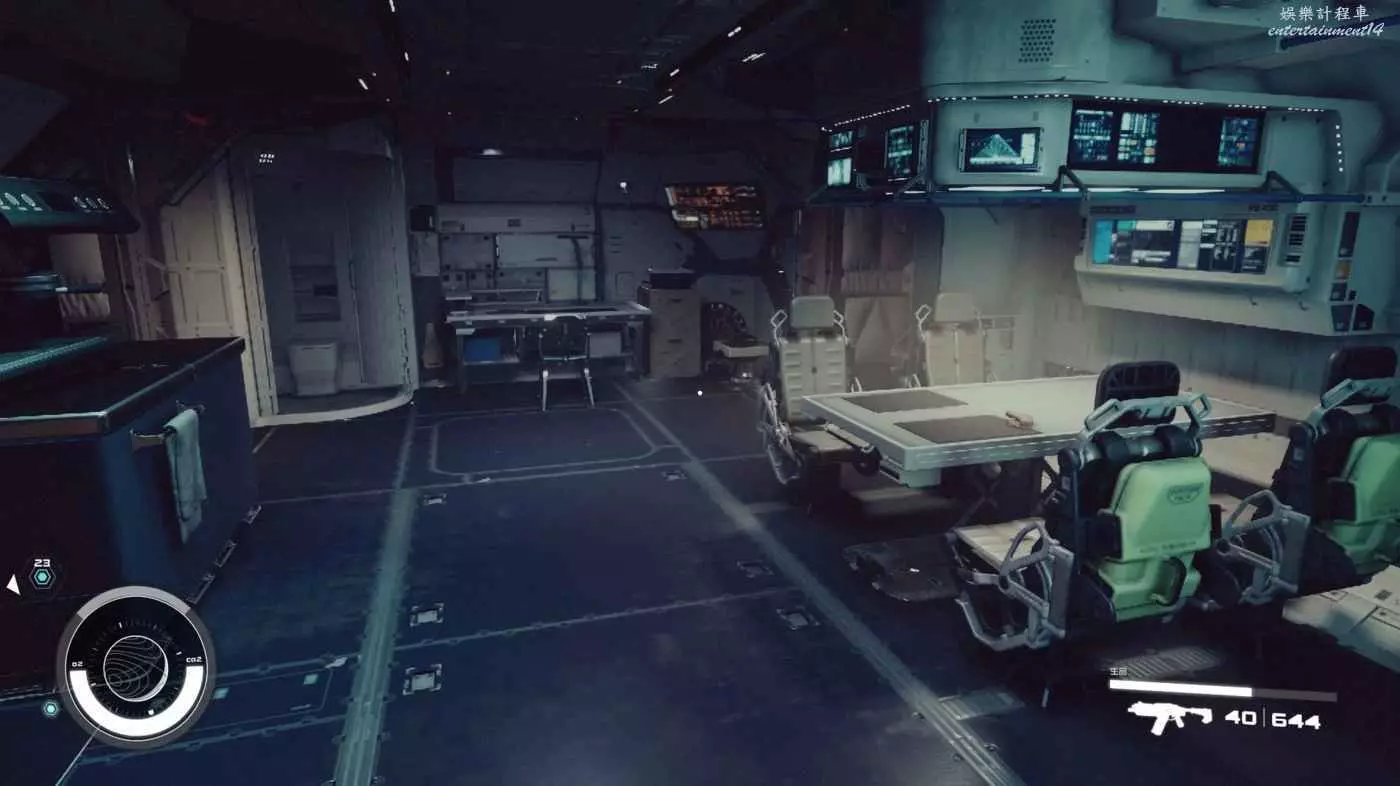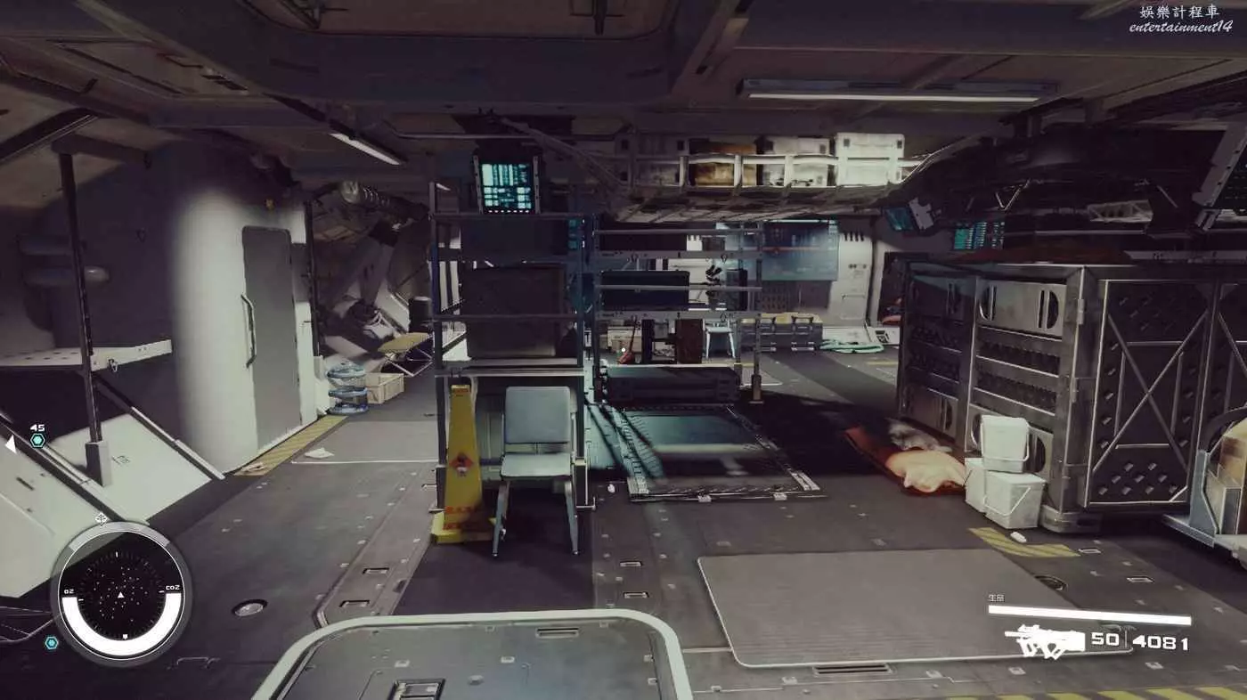 有一些盒子櫃子,然後就是醫務工作台和科研台。玩家並不能用床。