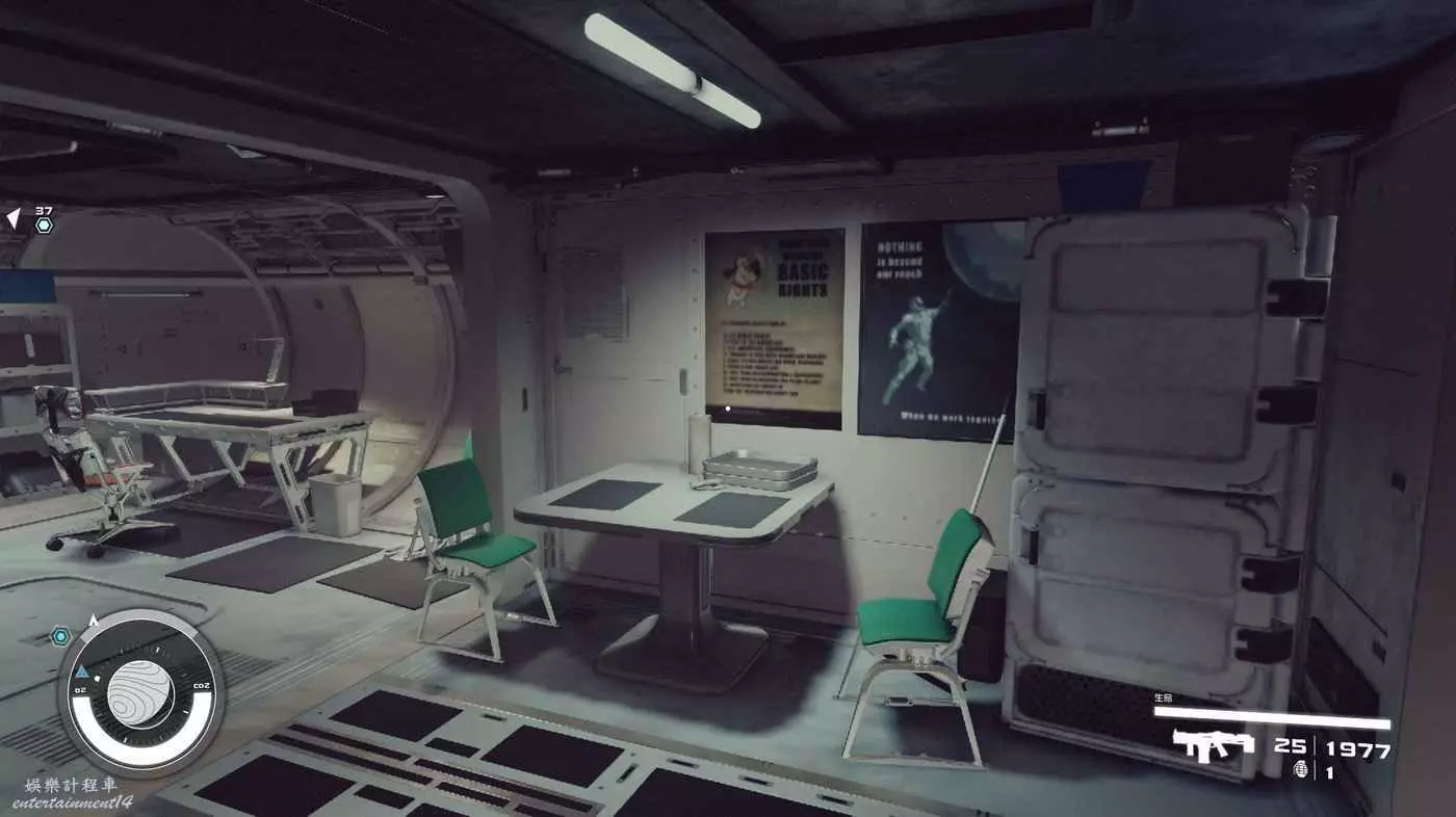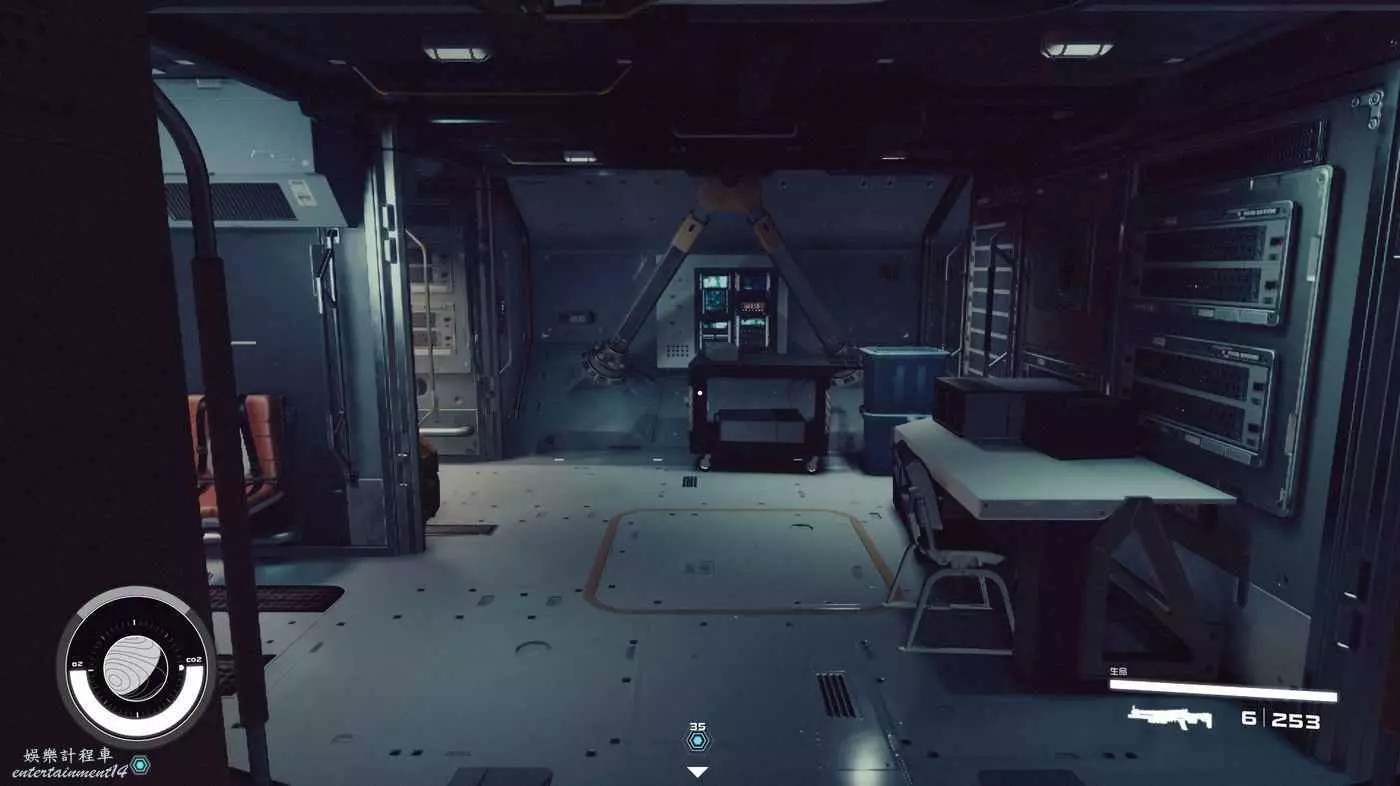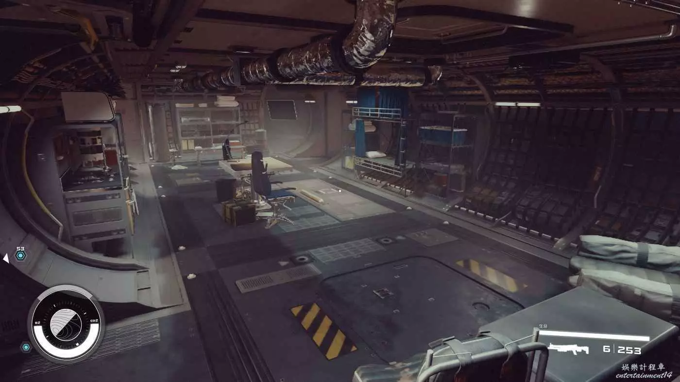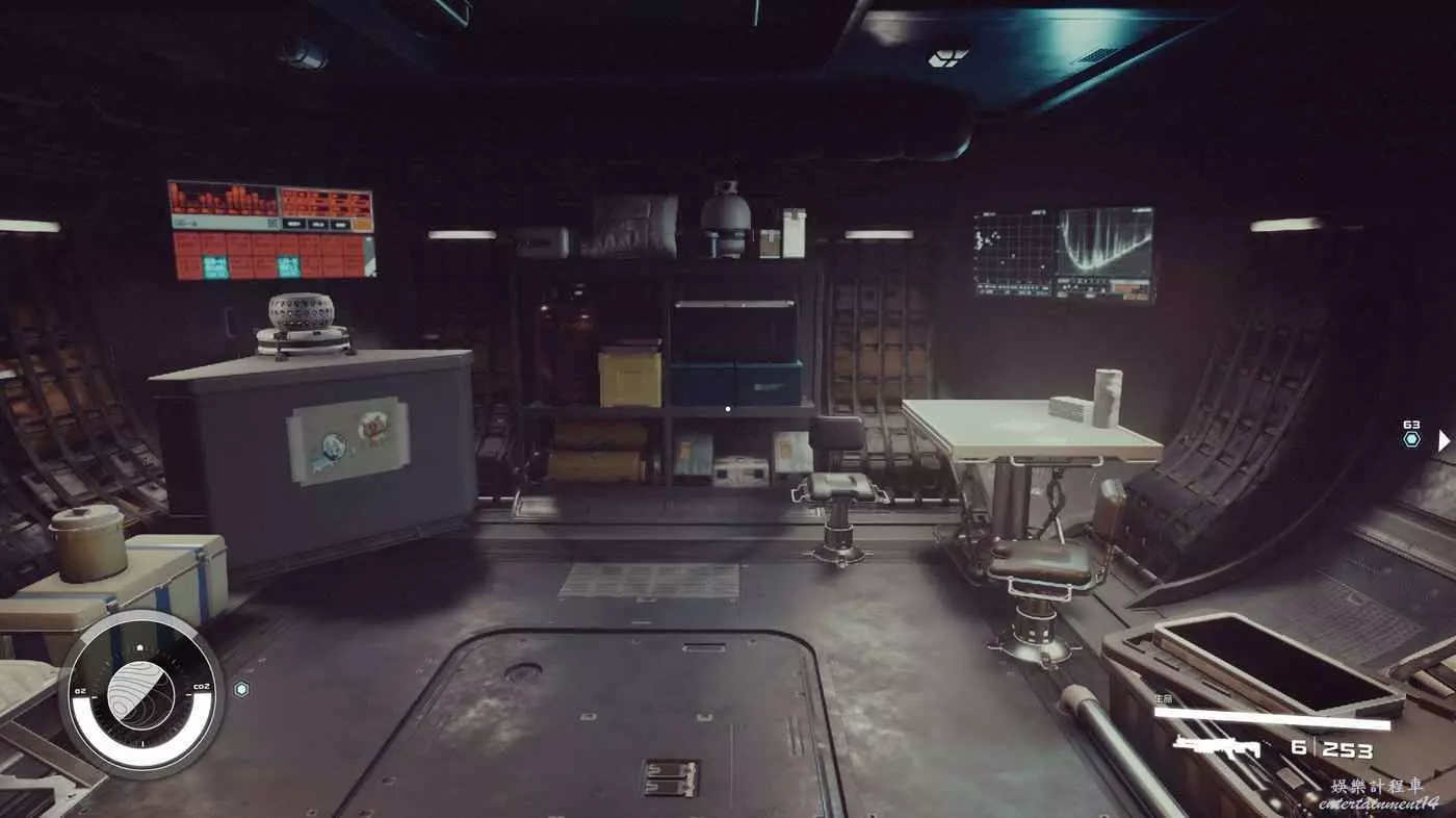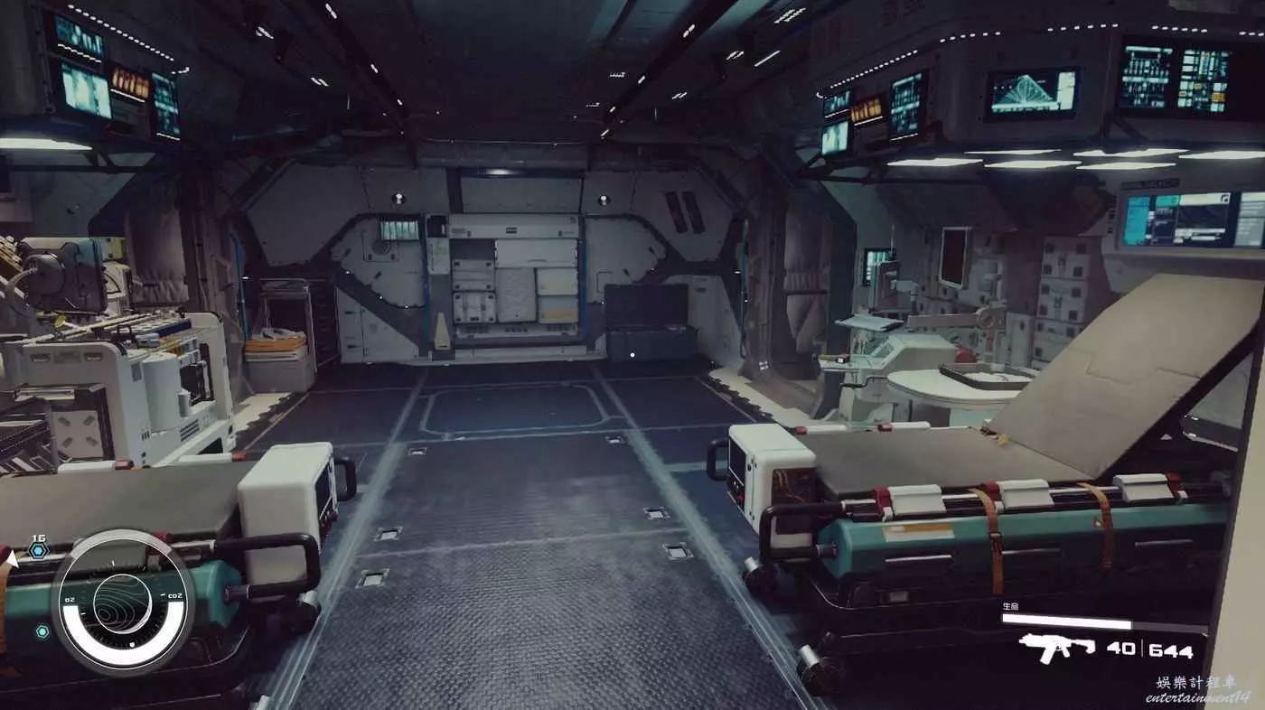 有一些盒子櫃子,然後就是醫務工作台和科研台。玩家並不能用床。