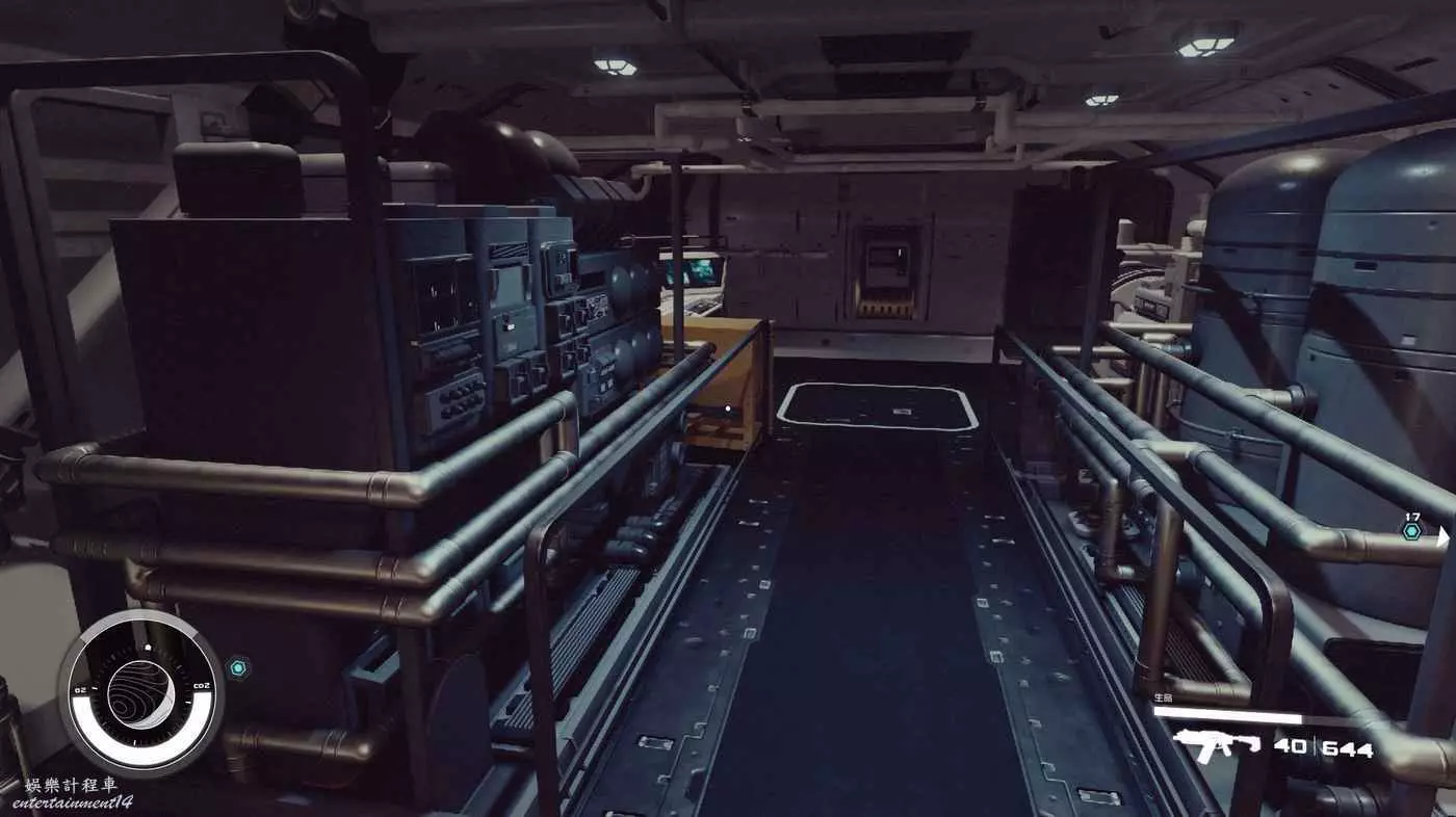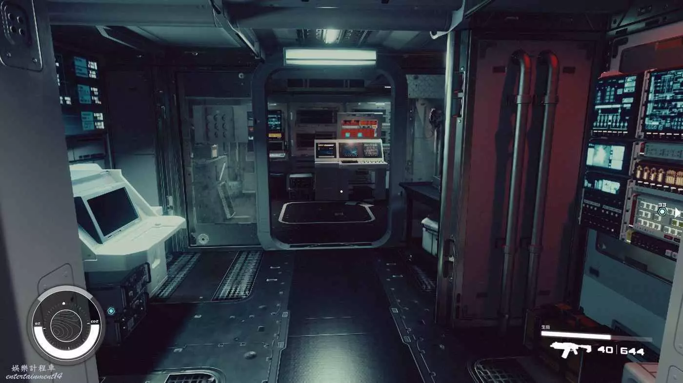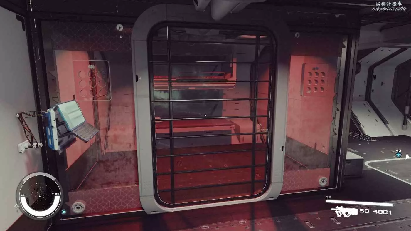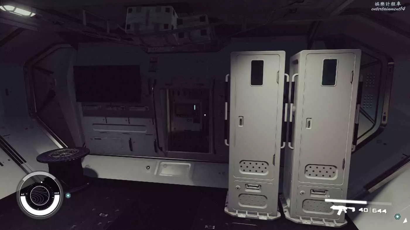 醫療室一般都有醫療工作臺和科研台,但是這個模組內部沒看見前者,不排除被艙門卡掉了。