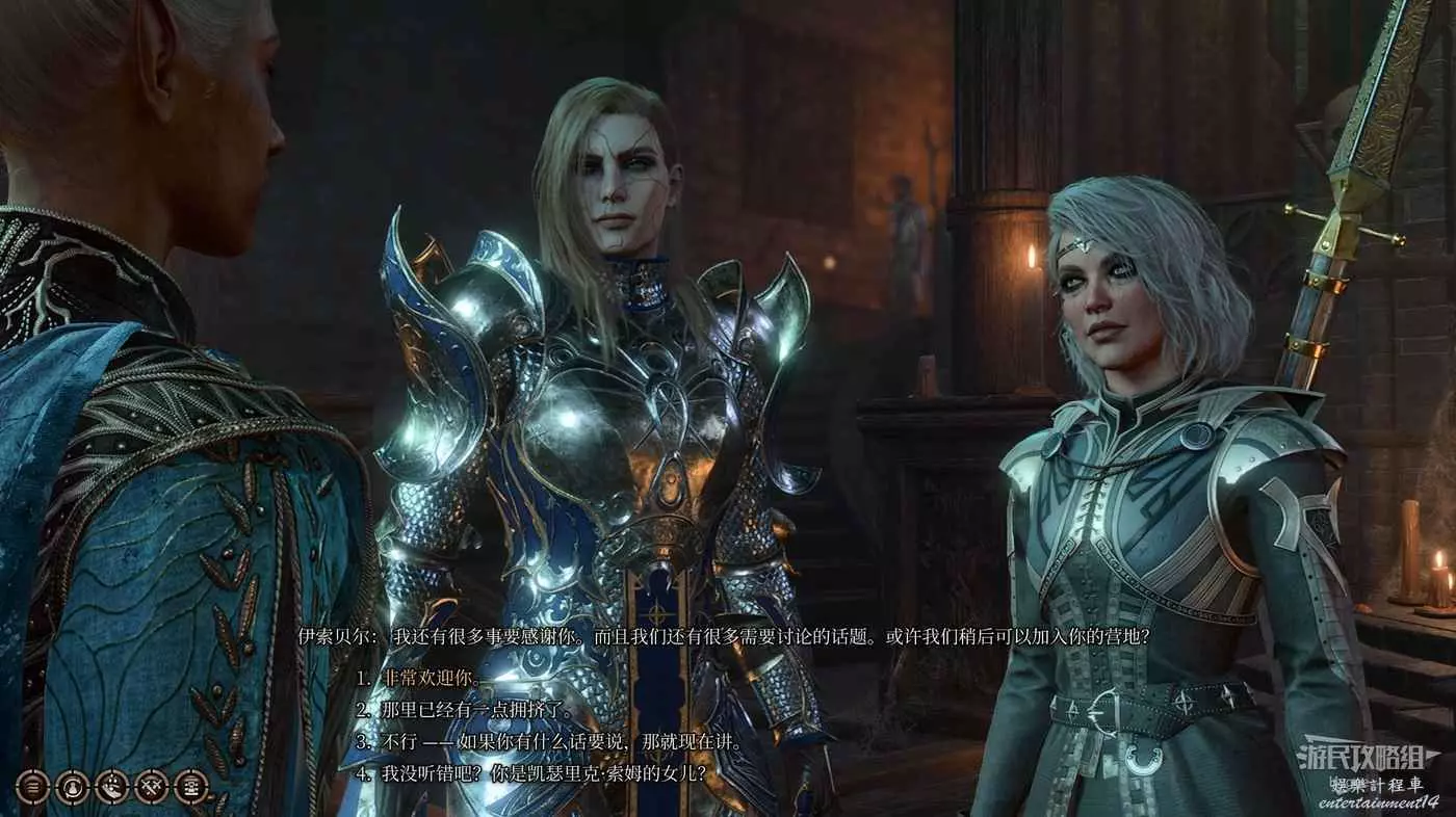 與吧台前的柯里拉交談可以得知她是拉斐爾的侍從,通過遊說等方式可以獲得情報,博多之門內有一個魔鬼信徒知道如何進入拉斐爾的宅邸。