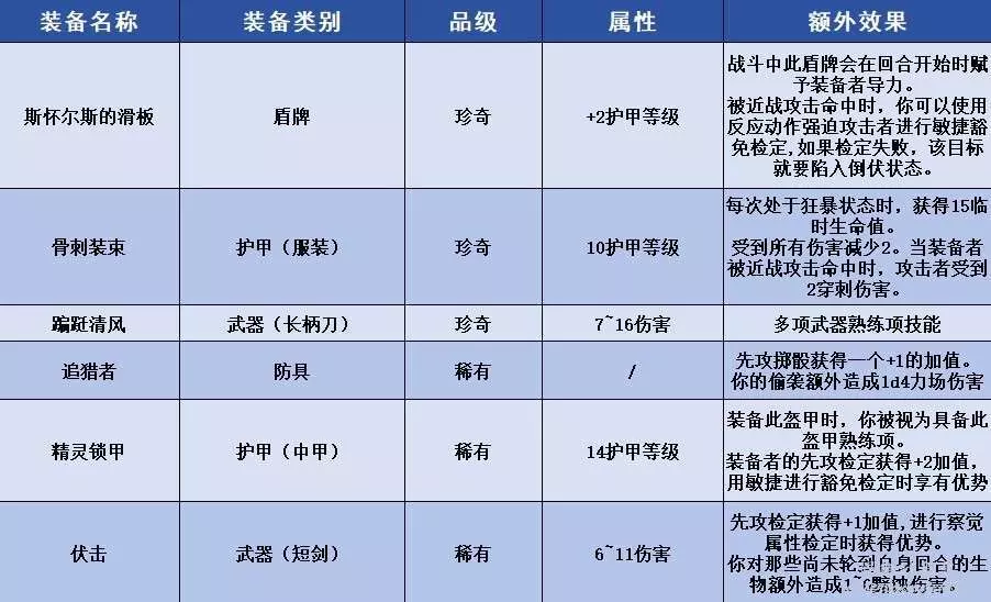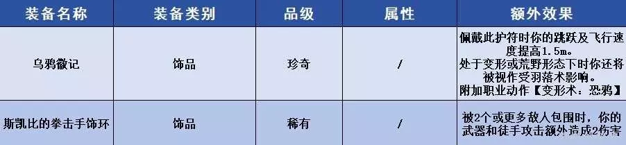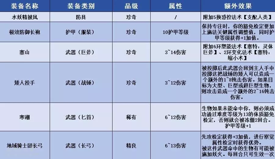 邦普納格爾出售的獨特裝備屬性和清單如下。除了裝備外還有4枚珍奇品級的投擲物【閃光彈】。