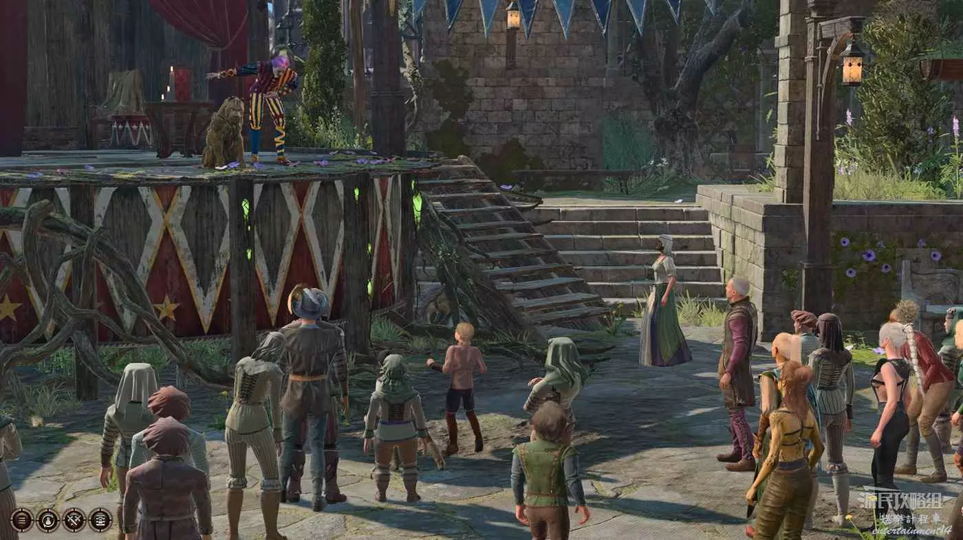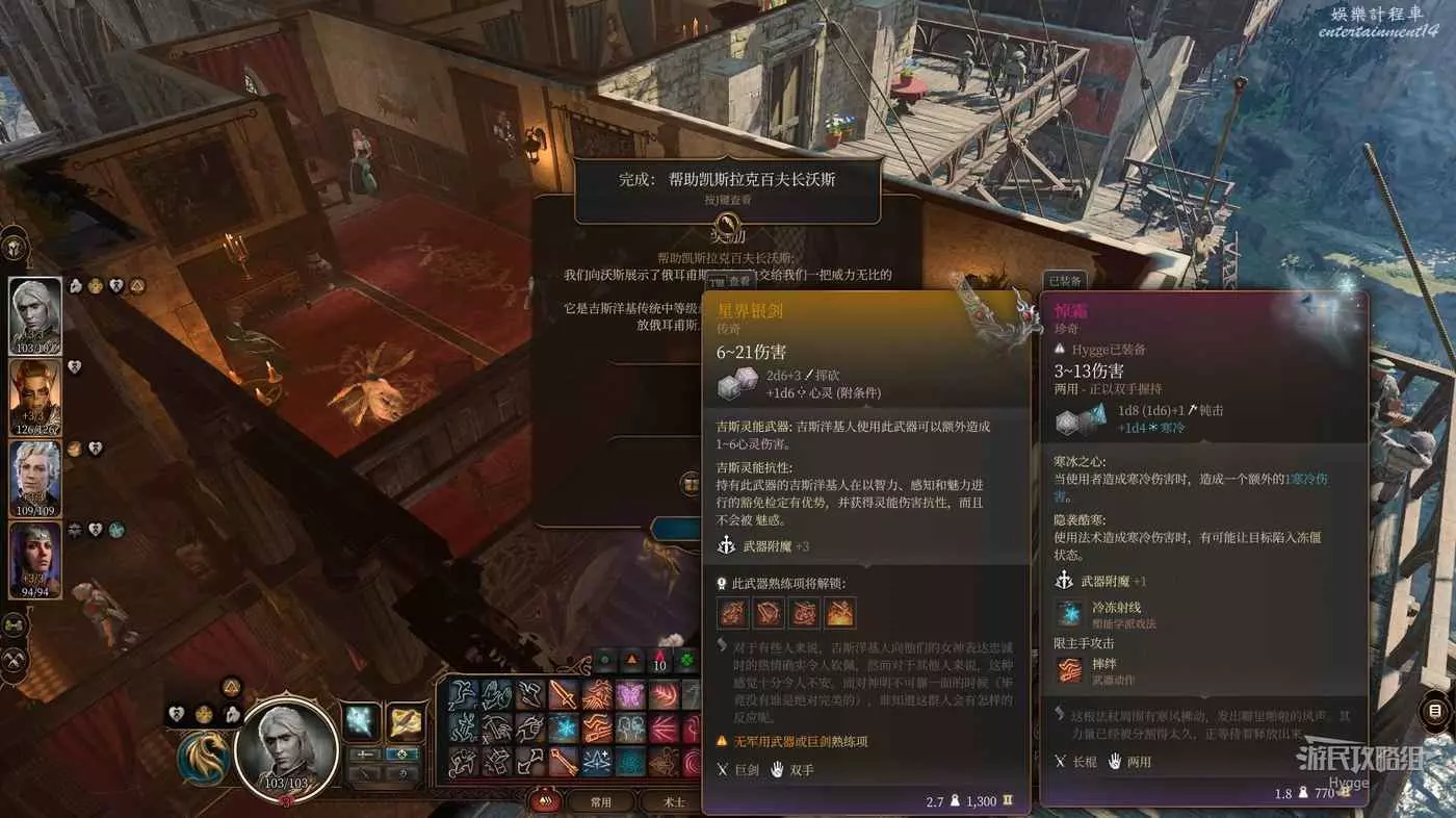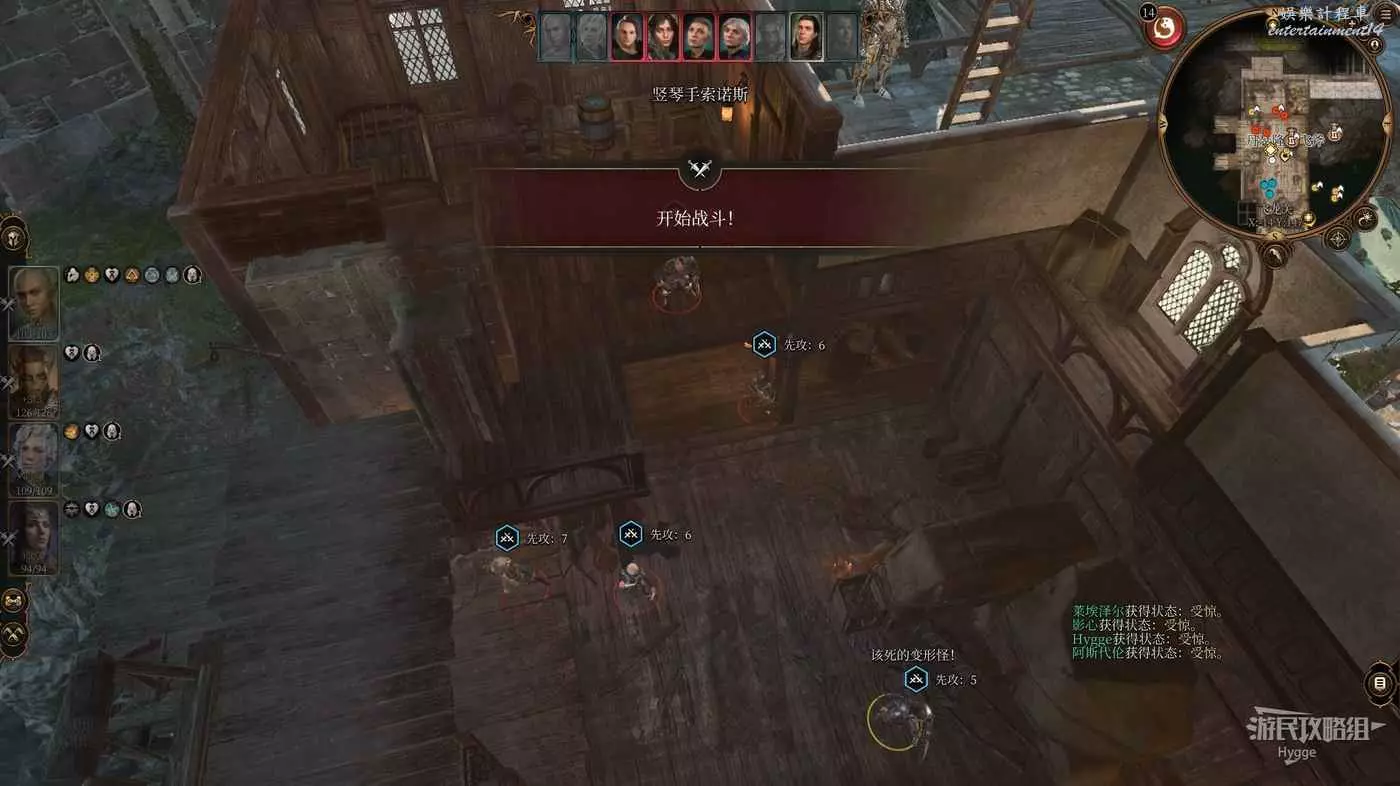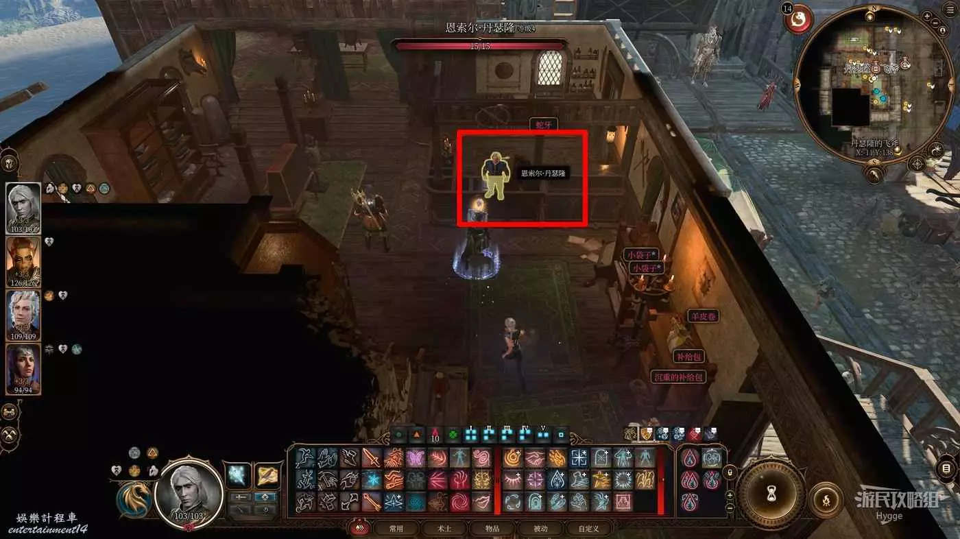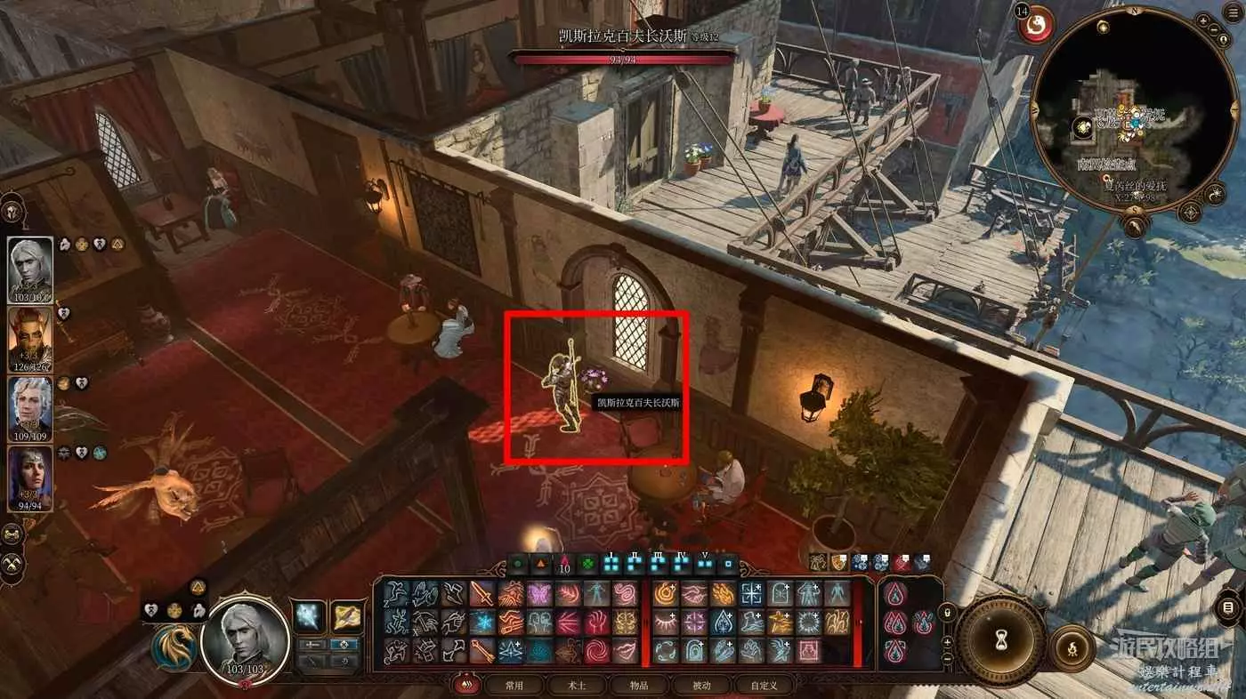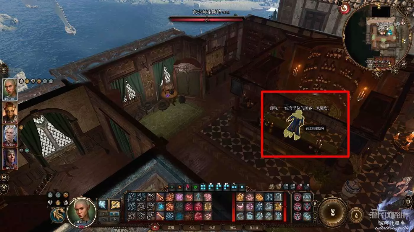 在地下室與豎琴手傑拉杜斯交談,通過洞察鑒定我們會發現他有一些害怕,鼓勵他說出真相後才發現此處除了他之外都是變形怪。