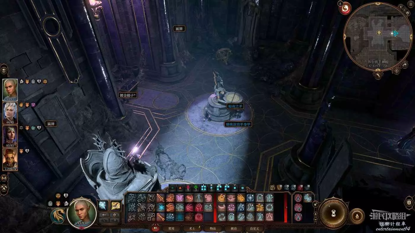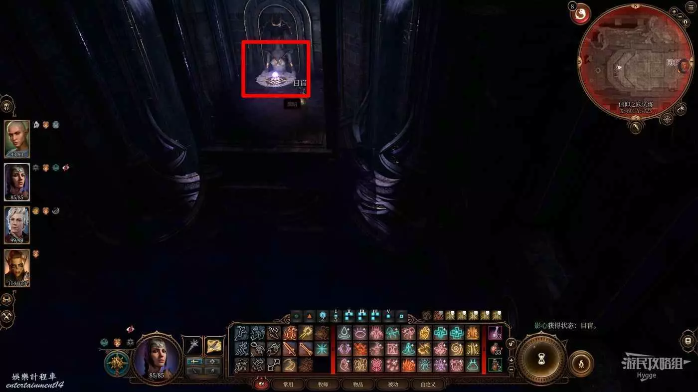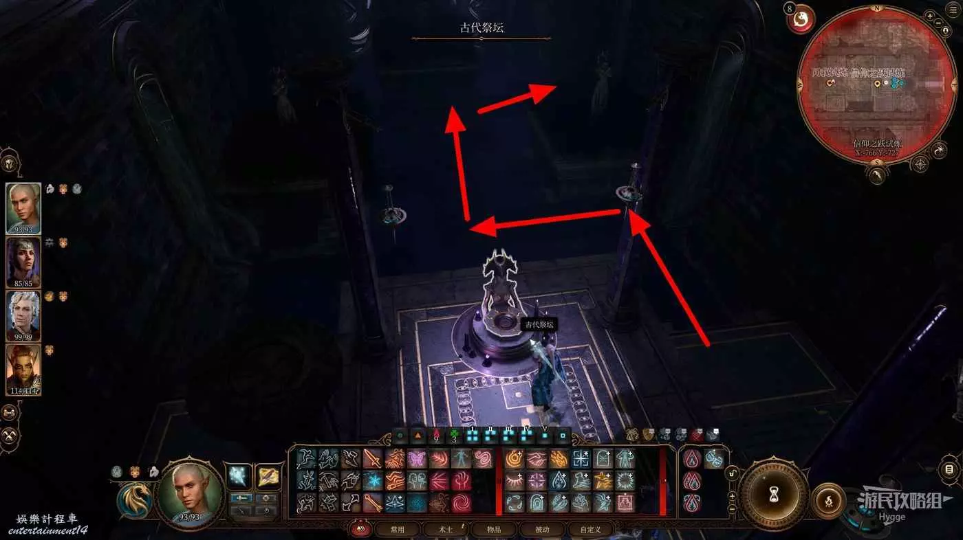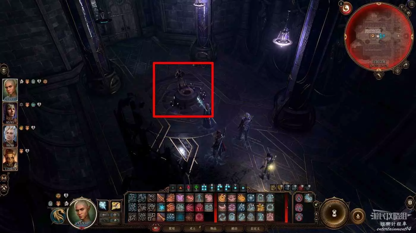 隨後我們先讓一名角色帶著鈴鐺深入神殿,找一些老鼠進入戰鬥,在戰鬥中召喚出血肉魔像。
