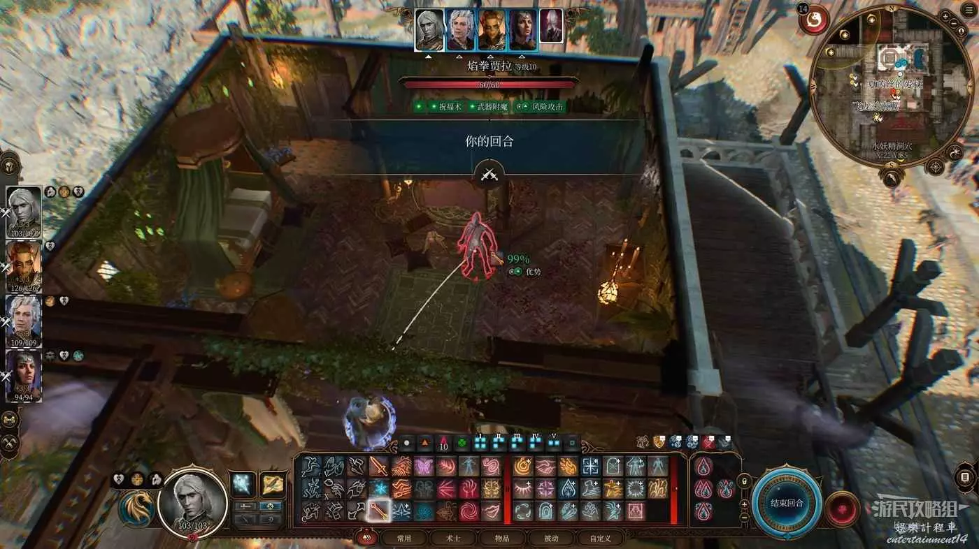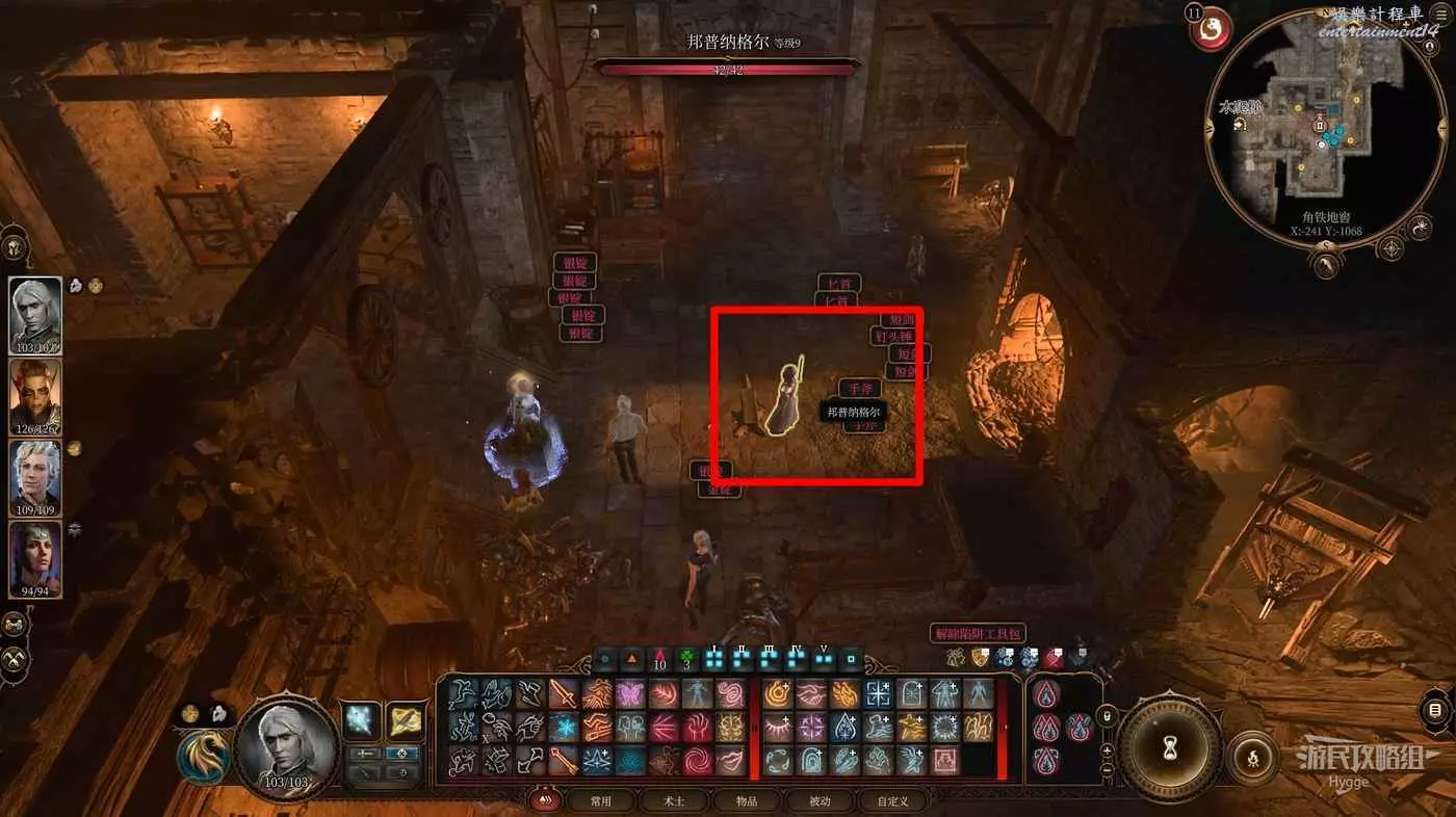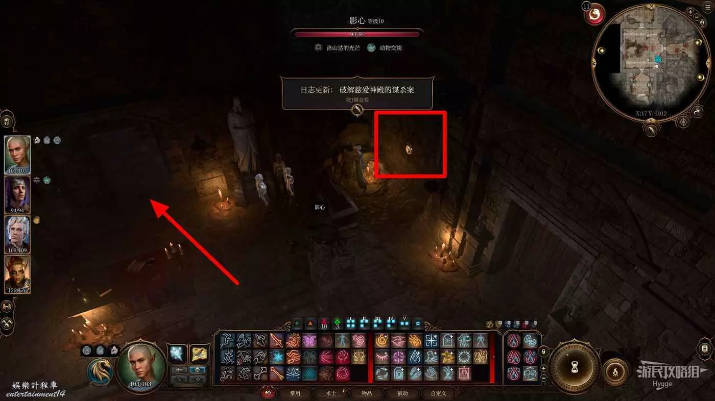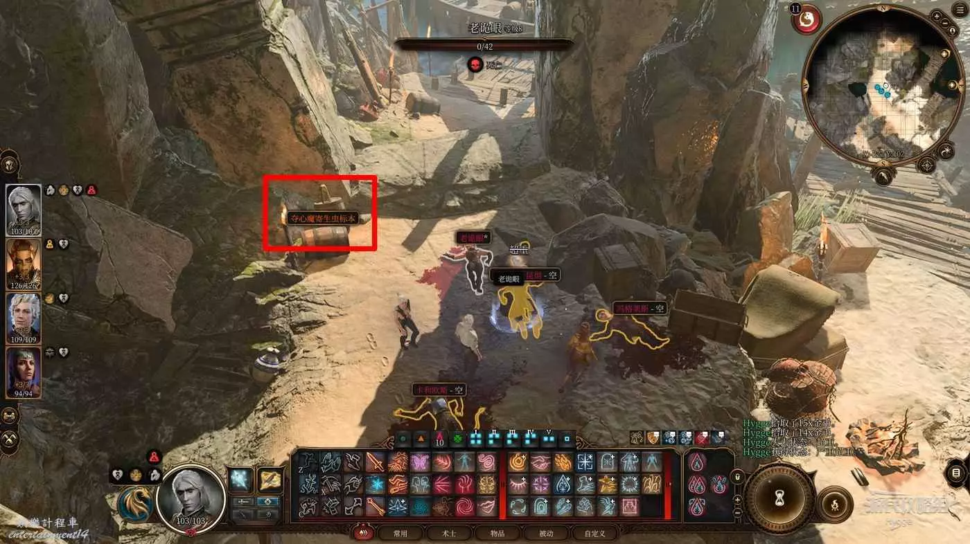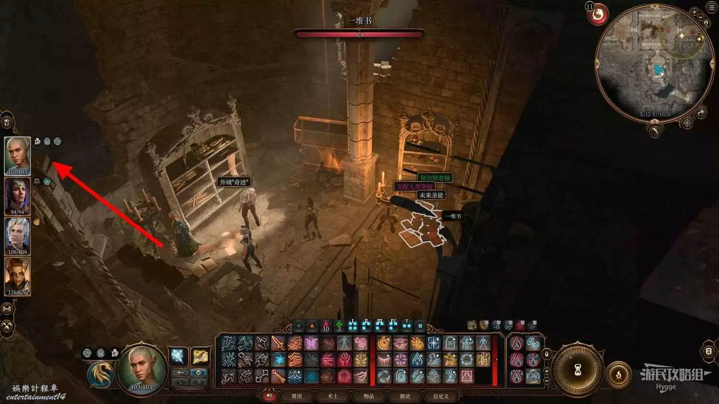 隨後我們先讓一名角色帶著鈴鐺深入神殿,找一些老鼠進入戰鬥,在戰鬥中召喚出血肉魔像。
