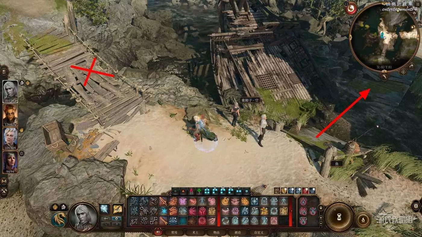 來到前方船隻殘骸處,先不要向南,探索完殘骸後繼續向西。