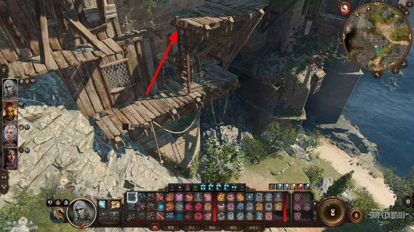 在侏儒藏身地門外可以通過木架繞開守衛進入飛龍關南翼,記住這個位置後面還會回來,此時先繼續向下抵達海灘。