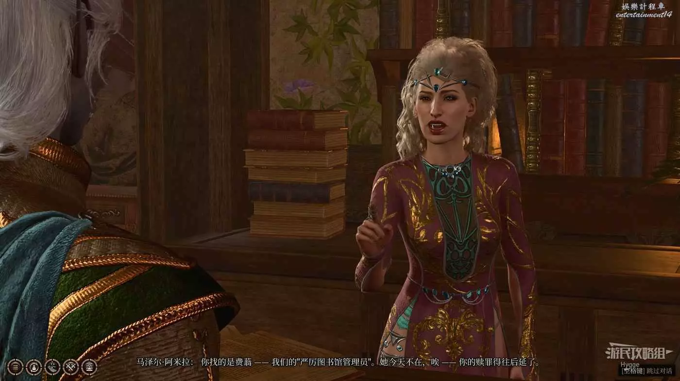 進門後與酒吧老闆娘馬澤爾交談,得知一名叫做費蓊的女子失蹤了,在表示我們願意幫助尋找後開啟支線任務【尋找嚴厲圖書館員費蓊】。