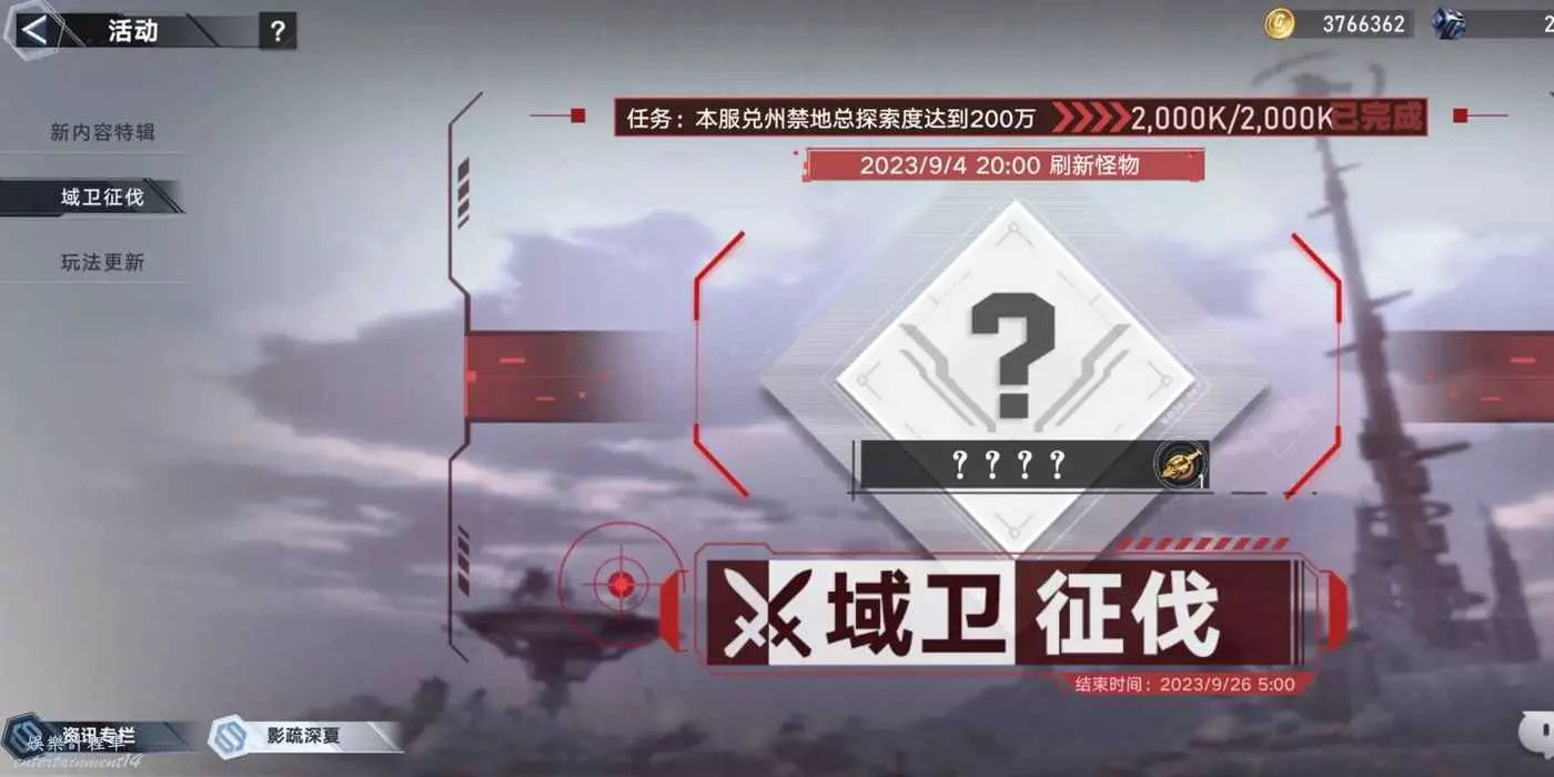 注意,只有當本服兌州禁地的總探索度達到200萬的時候,才會開啟“域衛征伐”活動。