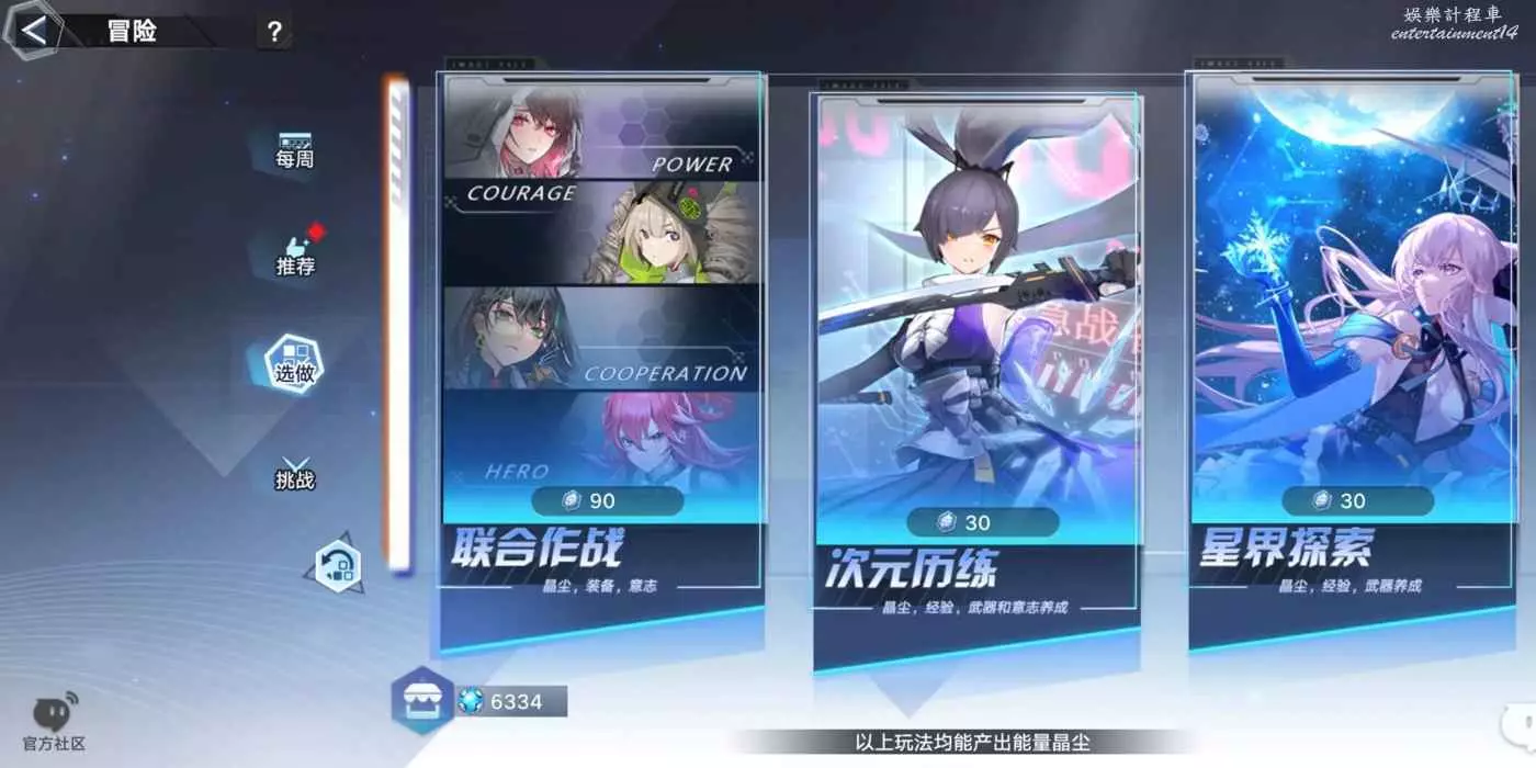 目前活力消耗的方式有三種,第一種是聯合作戰、第二種是次元歷練,第三種是星界探索。聯合作戰中有的副本打得時間比較久會麻煩一點,可以獲取裝備和意志;星界探索需要我們去大世界找星門打,可以獲取武器養成相關道具;最簡單消耗活力的方法是直接使用次元歷練的“代理作戰”,能一次性瞬間清空所有的活力,可以獲得武器和意志的養成道具。這裡大家可以根據自己的需要選擇參與的活動並消耗活力。
