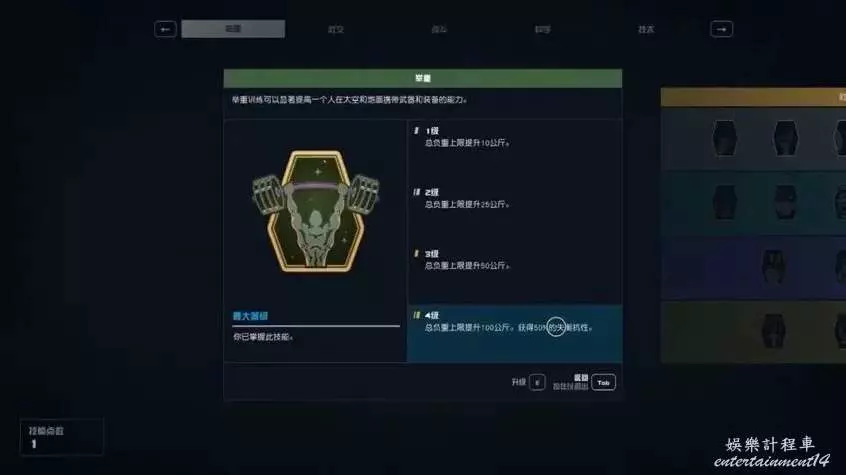 省流版:技能推薦:物理類舉重。技術類飛行背包訓練,安保,目標控制系統