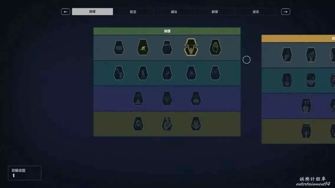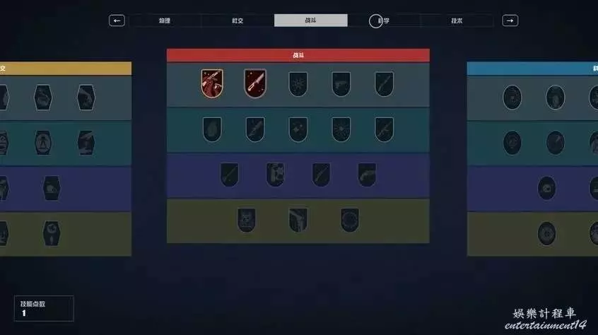 首先就是我們升級會給的技能點,一共有5大板塊。