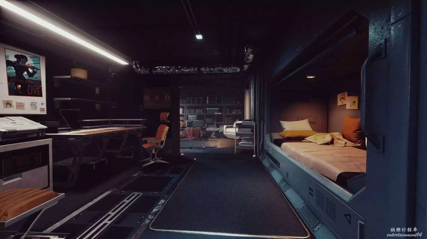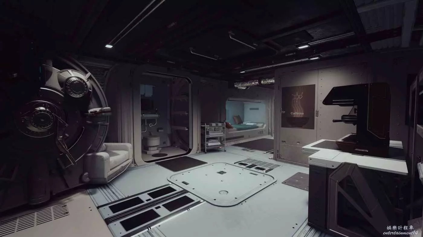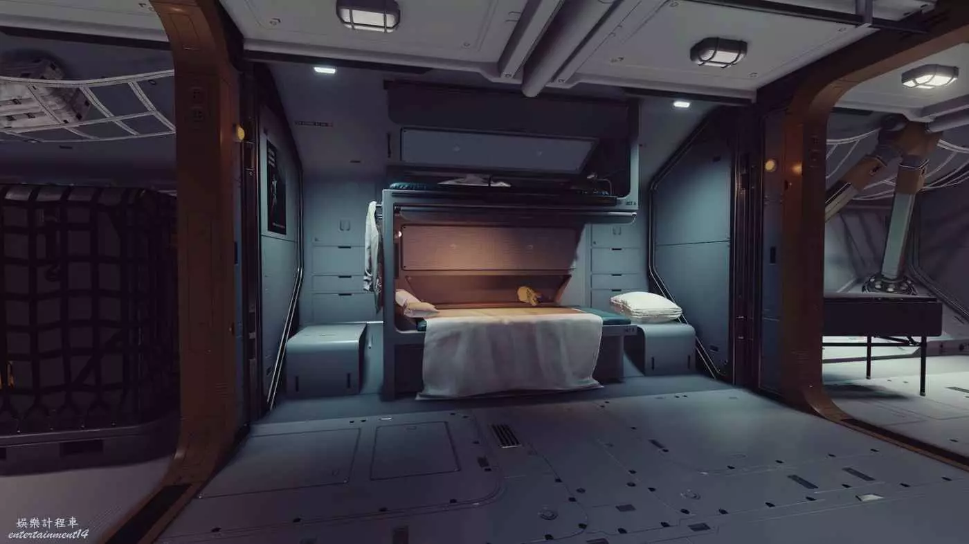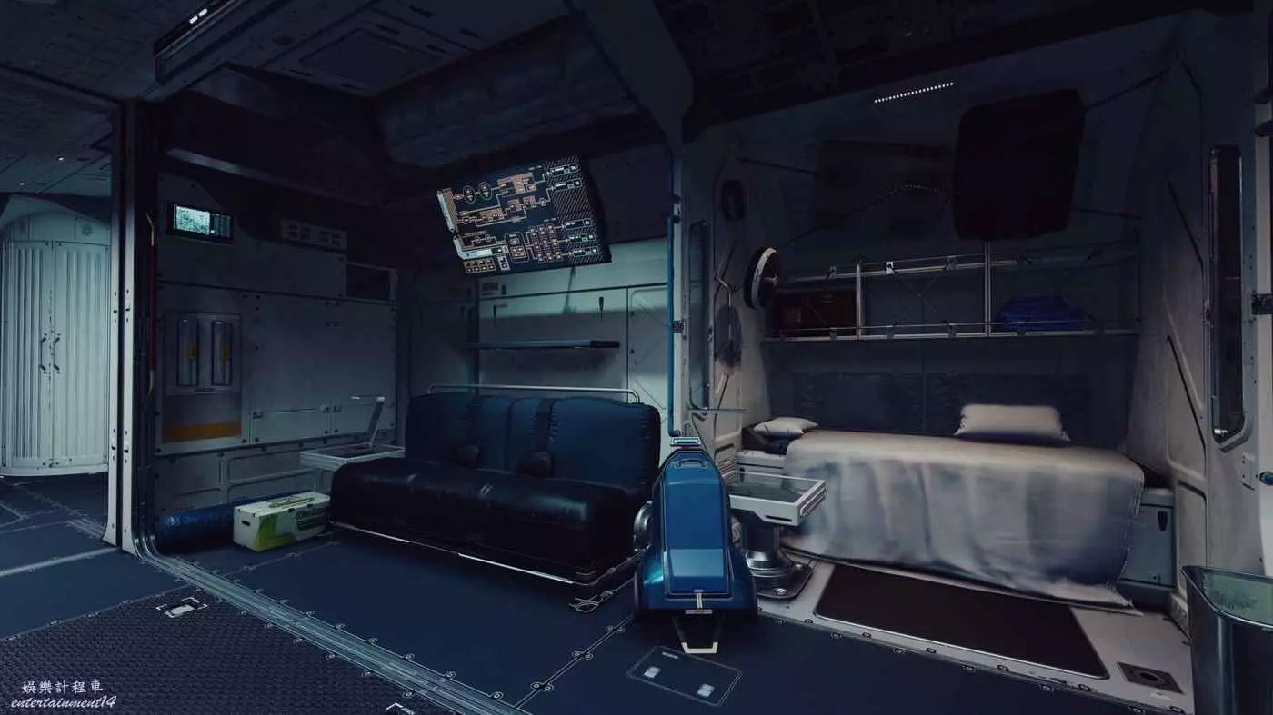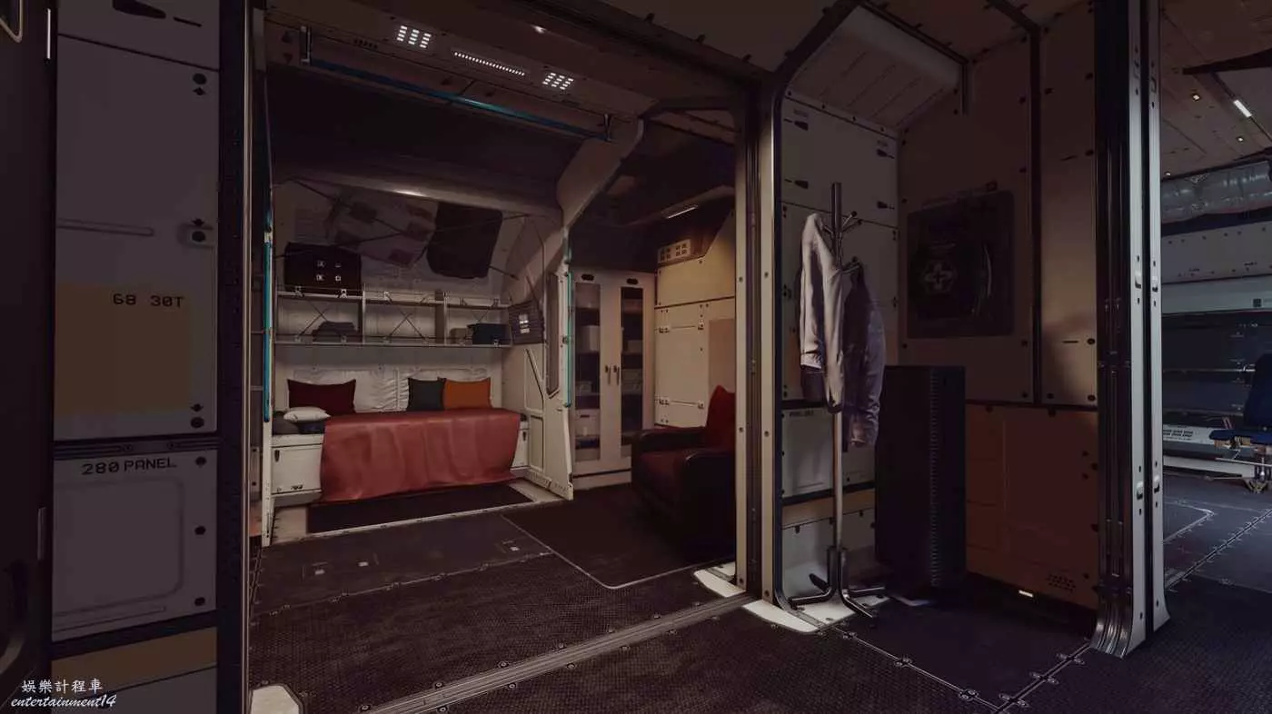 最後是在過道中間單獨的臥室,一些衣櫃,一個床頭沙發,在冰冷的宇宙深海中,這麼一個溫馨的臥室乃是不二之選