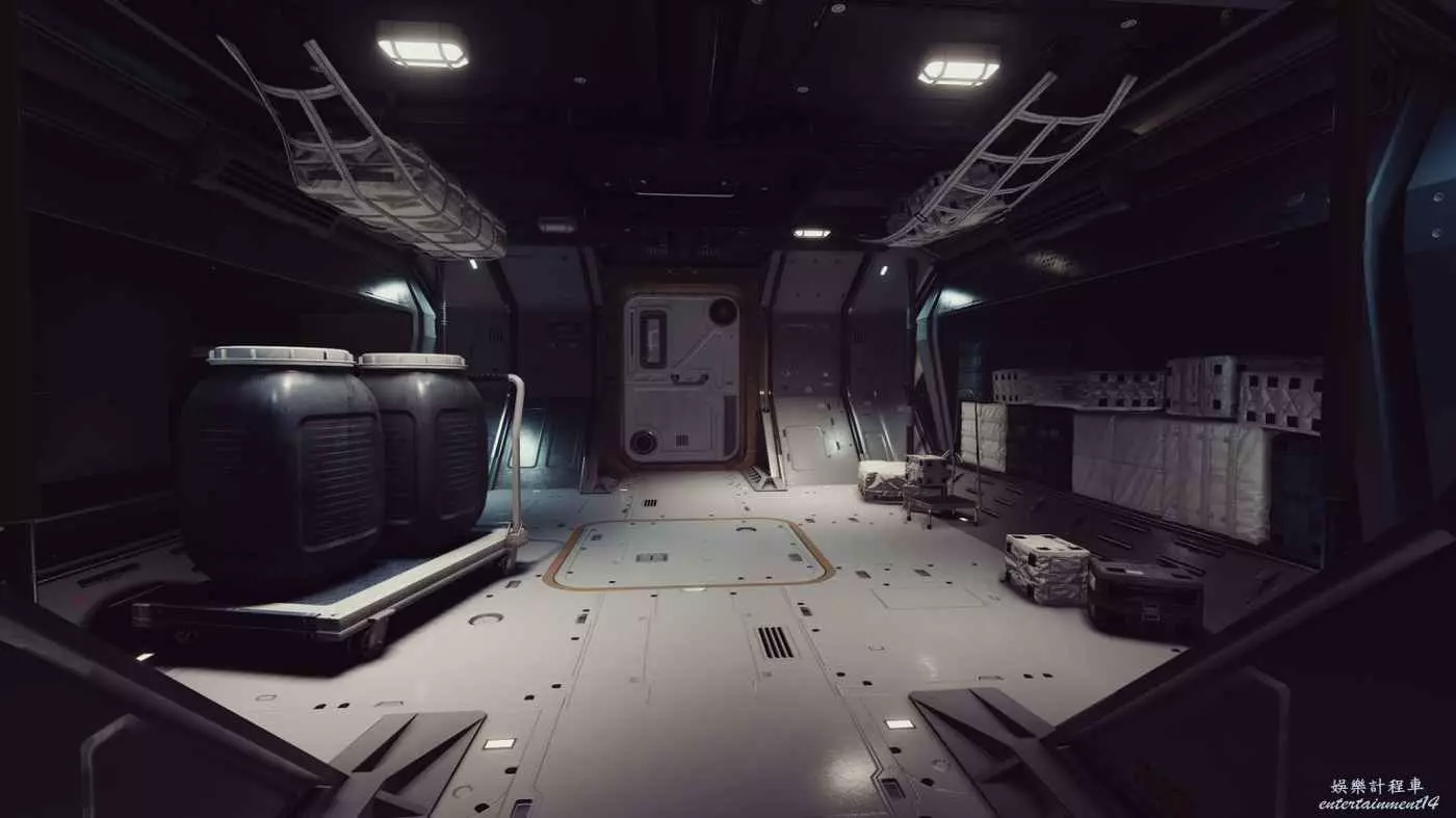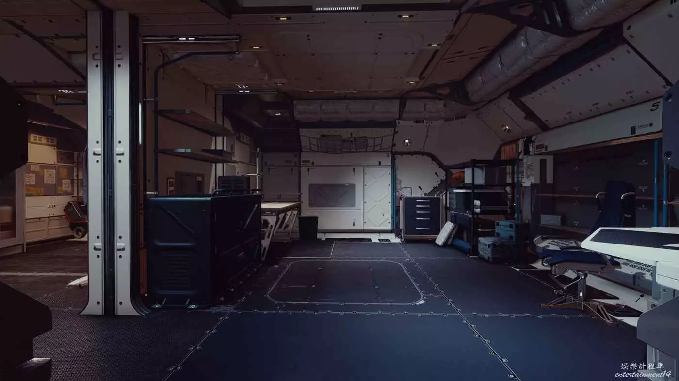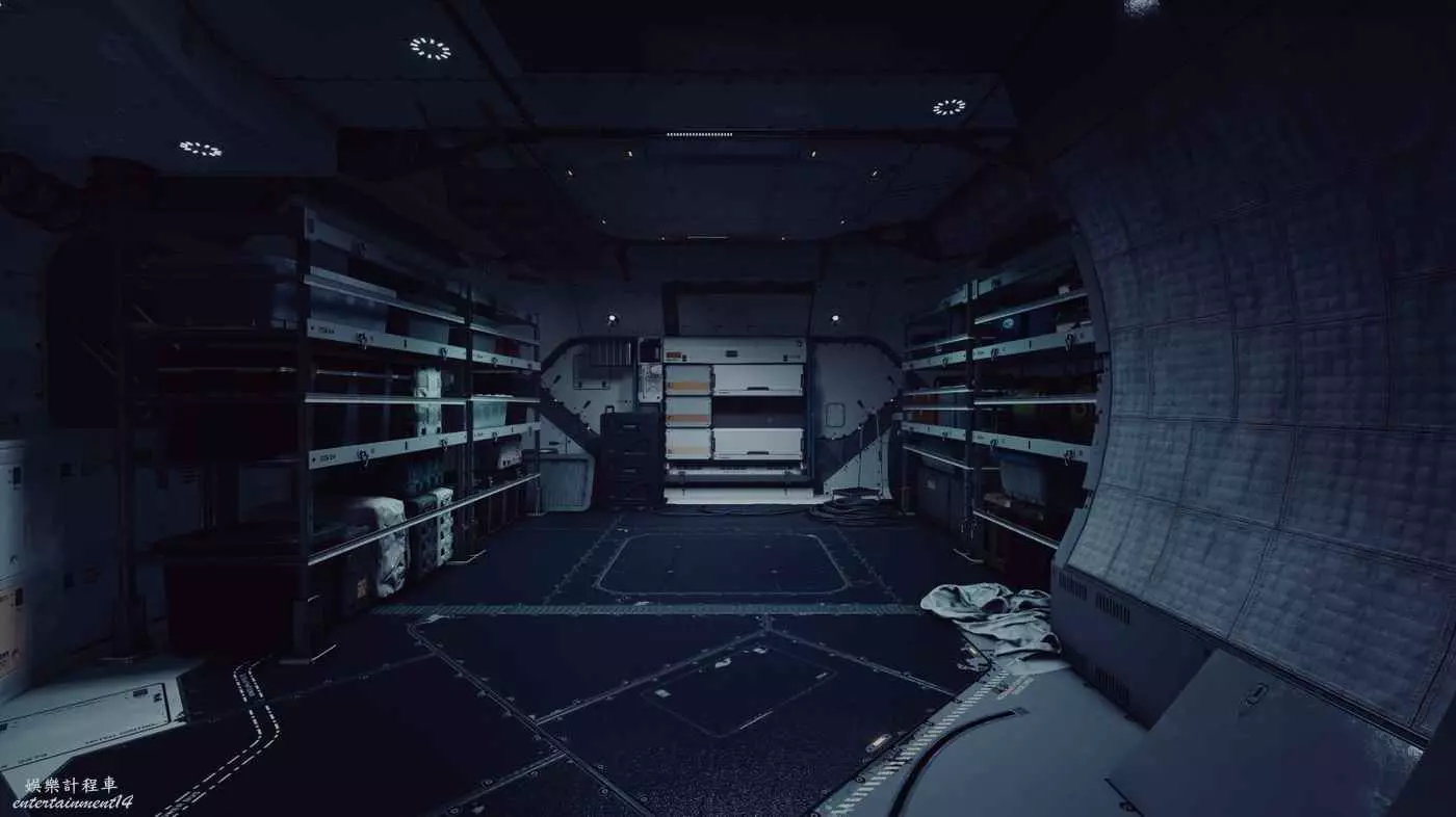 登上艙梯後來到飛船主體後部的第二個模組太陽航宇儲藏室頂部1×1,也是同樣風格的內飾,中間一個氣密門分隔了飛船主要艙室和倉庫,頂部則是安裝了對介面