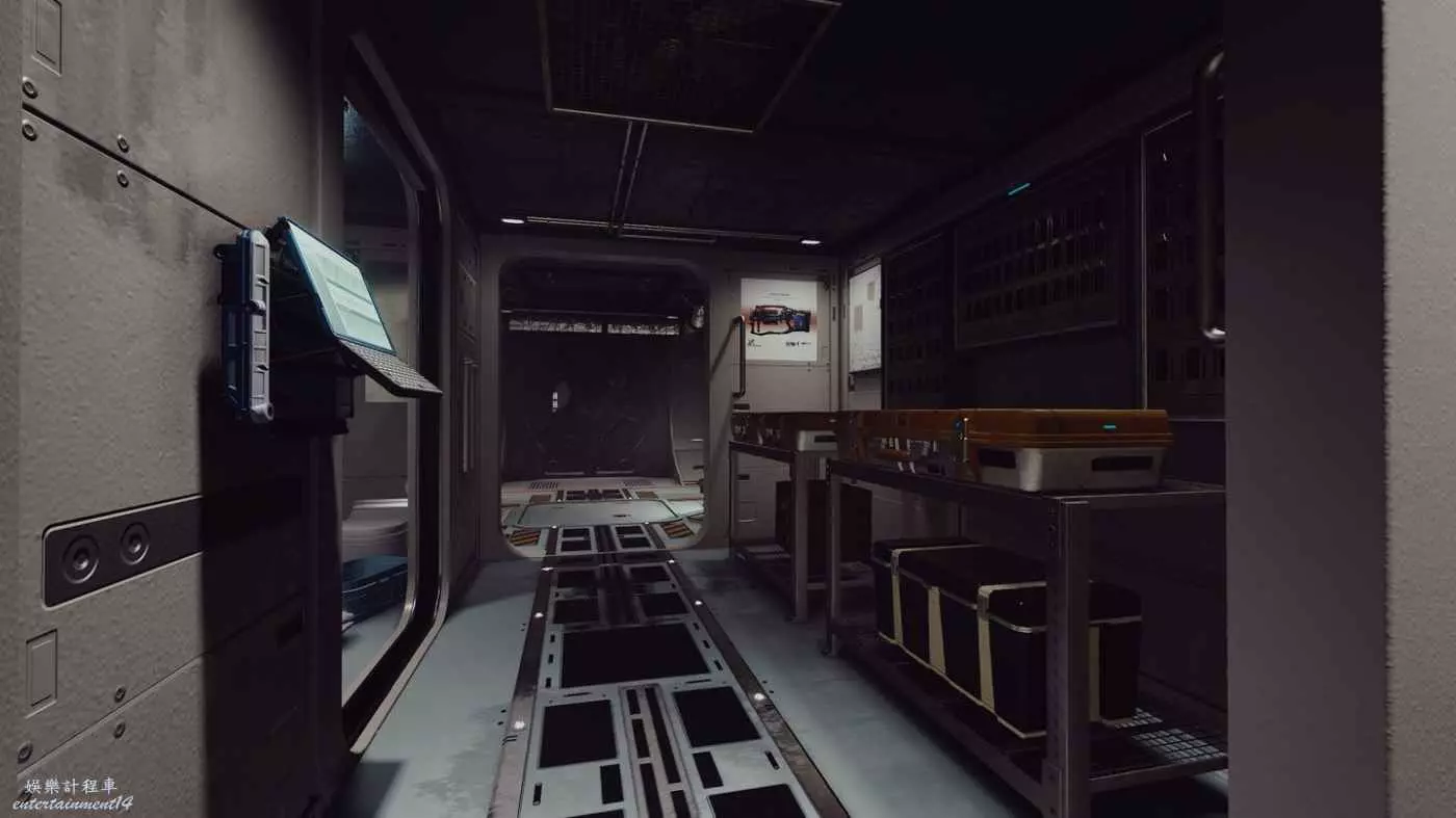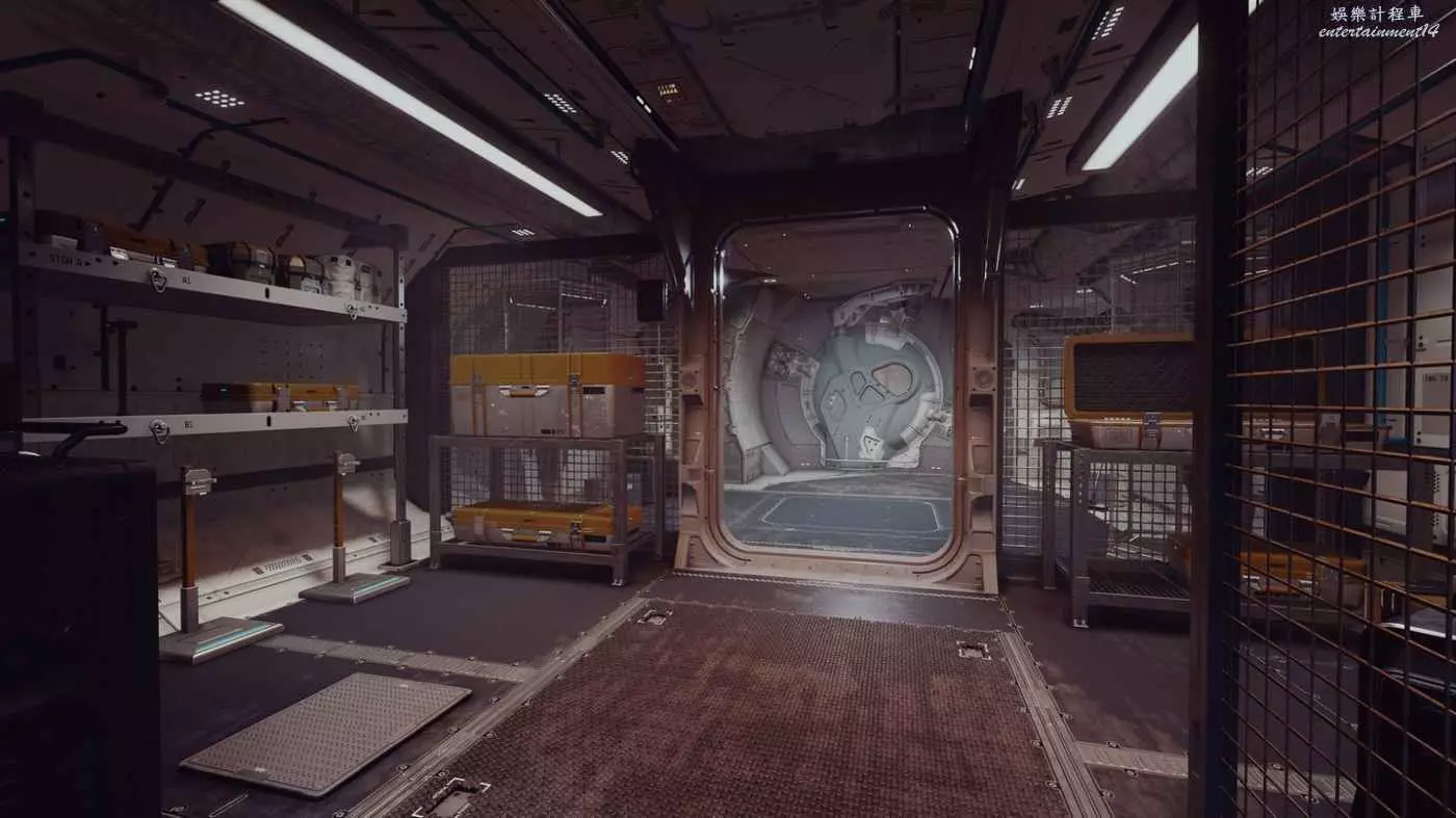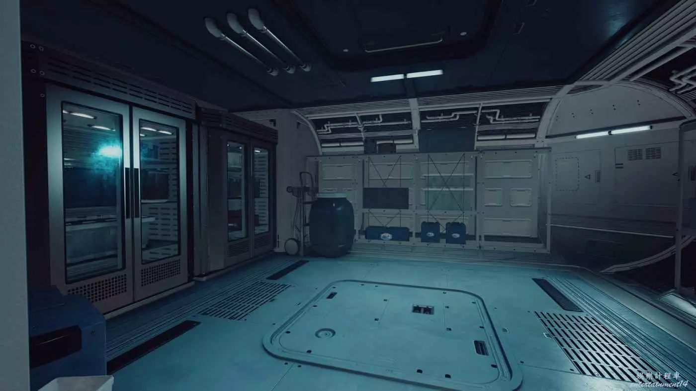 登上艙梯後來到飛船主體後部的第二個模組太陽航宇儲藏室頂部1×1,也是同樣風格的內飾,中間一個氣密門分隔了飛船主要艙室和倉庫,頂部則是安裝了對介面