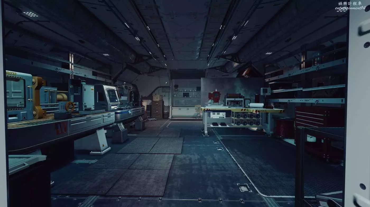 無隔間寬敞且浪費,明明可以放床和廁所,廚房桌椅也能塞,唉就不做,唉就留著,有宇航服 工業 武器三個工作台