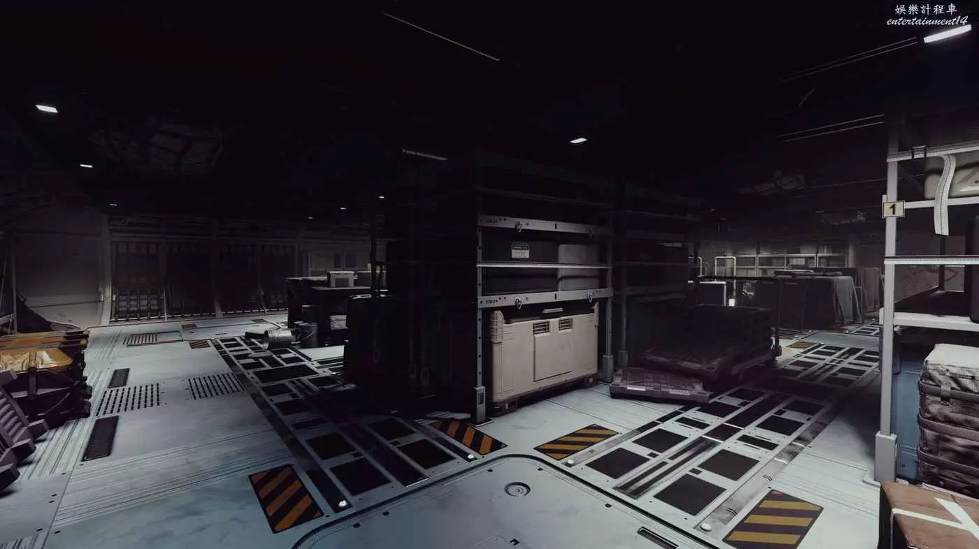 第二個隔間右邊是武器箱和武器架,左邊是有電子鎖的臥室