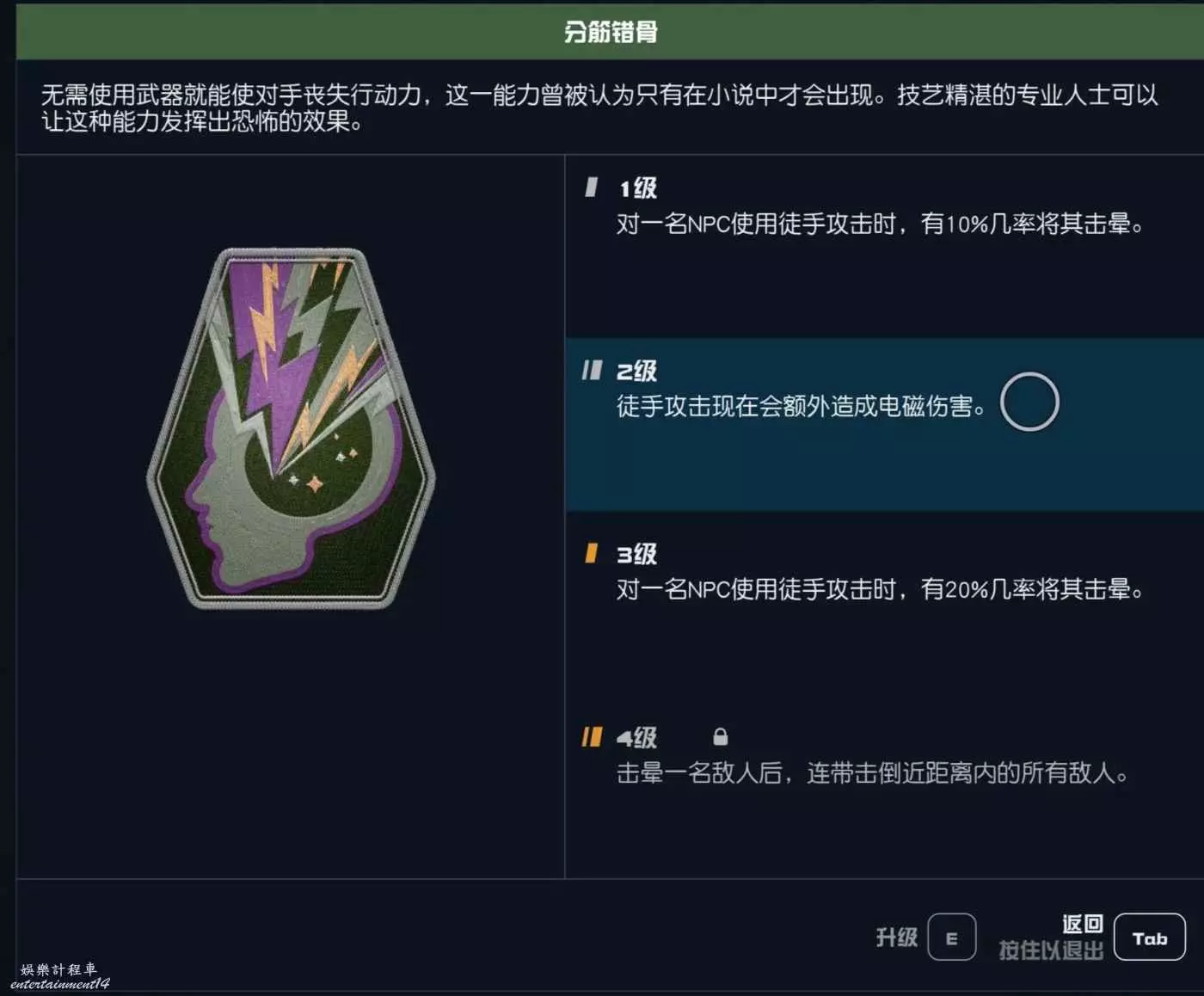 潛行點一級就行,我們這個流派雖然主打一個潛行傷害,但是用不到潛行的被察覺難度,儘量選一些升級比較容易的技能去點,這裡樓主推薦幾個好升級的