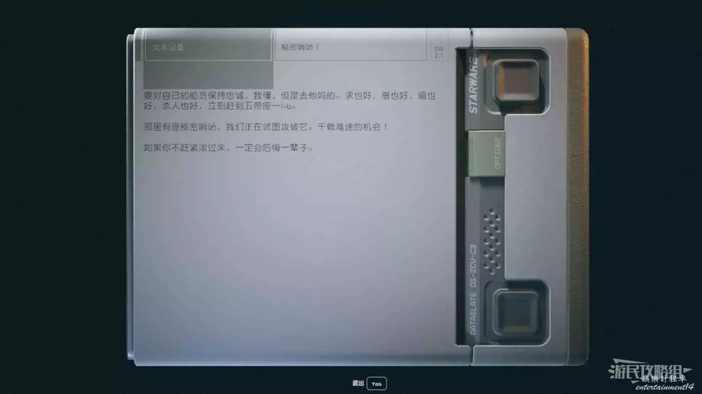 在完成主線任務【老住區】之前前往太陽系月球【環宇新型造船廠】擊殺那裡的敵人,敵人會隨機掉落筆記【秘密哨站!】(控制台ID為001CCFB7),如果沒找到的話也可以通過搜刮太空劫匪或黃道傭兵團等敵人屍體來獲得。