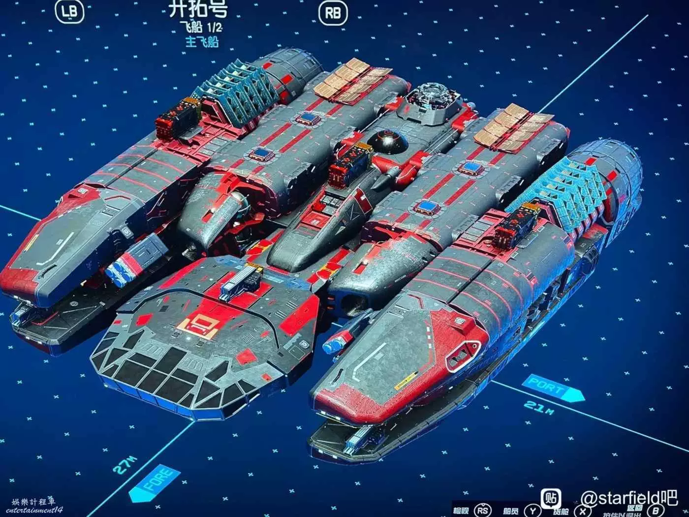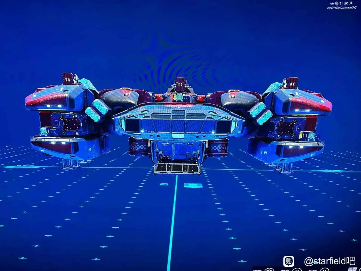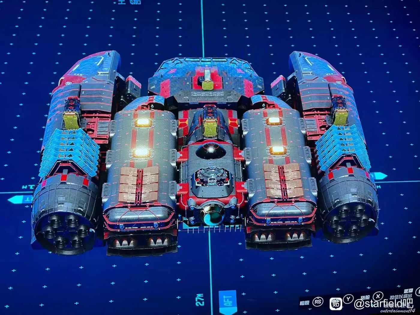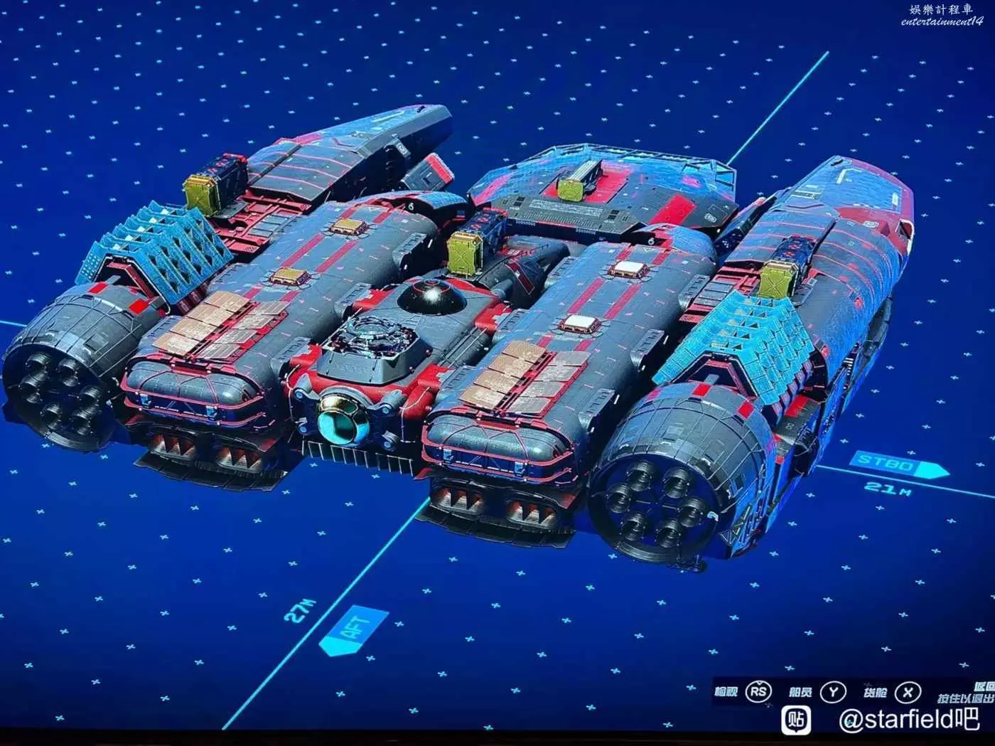 5.外觀盡可能簡潔但掛點要多,隱蔽擴展空間要大。而且個人喜歡粗胖扎實的,因此做成了三體佈局,左右兩塊為非活動區,主要放置發動機、反應堆、重力核心起落架和貨艙以及裝飾。同時三體結構也確保了中心艙段兩側有足夠多掛點可以擴展並且不影響飛船外形。