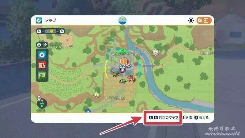 按Y打開地圖,然後按L/R即可返回帕底亞地區。初次前往北上鄉後,即可隨時從地圖上切換帕底亞地區和北上鄉。