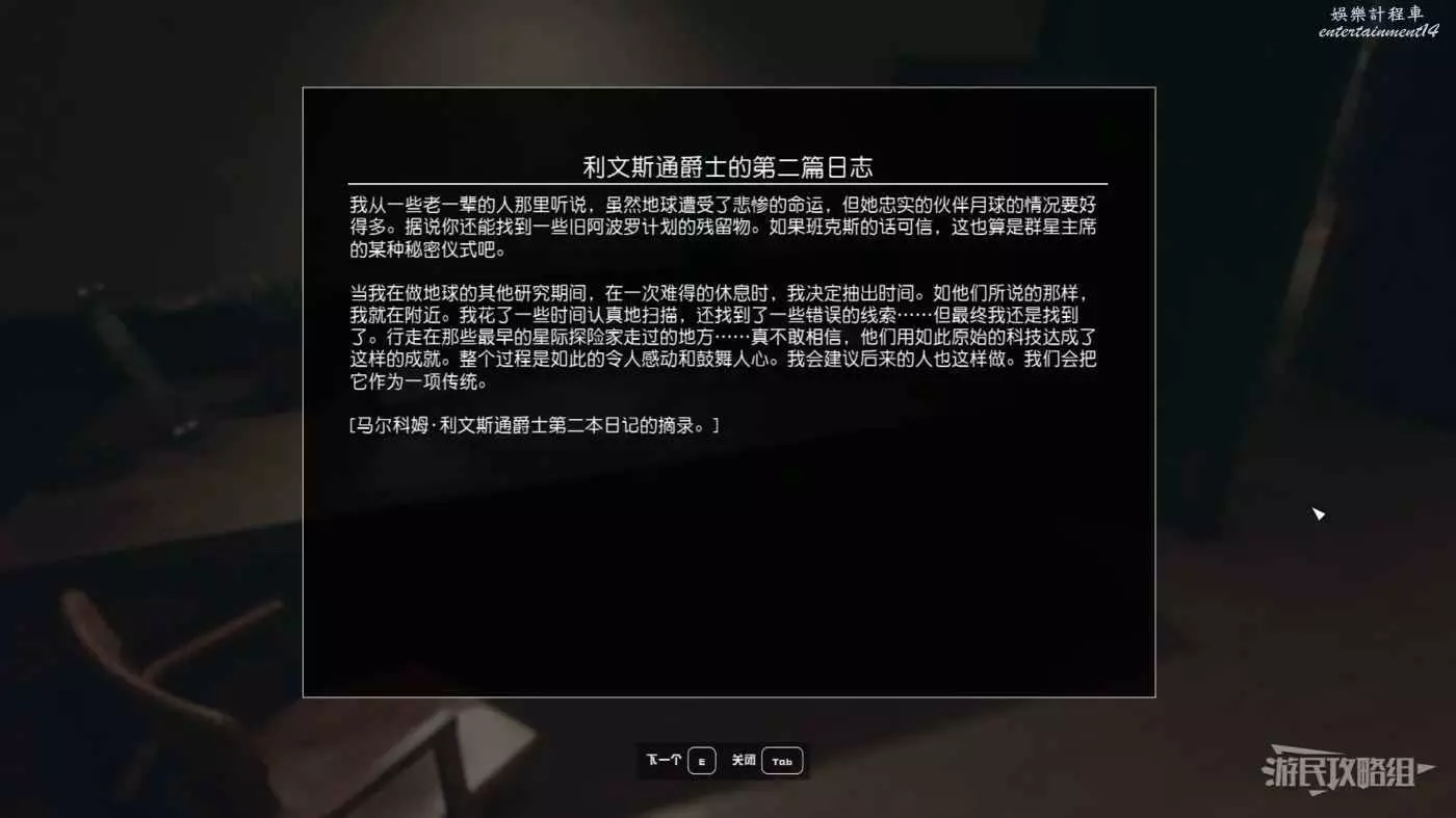 星空 (Starfield) 阿波羅登月艙位置及雪花球獲取方法 14 9 月 2023-09-14 廣告 作者:瑞破受氣包 來源:遊民星空 阿波羅11登月艙地標位置 首先前往陋室,沿著通往地下室的門旁邊的樓梯上樓,穿過樓梯間後進入右轉第二個門來到走廊。 面對走廊,進入左手邊第二個門。 進入房間後,閱讀床對面桌子上的【利文斯通爵士的第二篇日誌】。 閱讀完畢後會觸發活動,跟隨活動指引前往月球上的地標【阿波羅著陸點】。 阿波羅雪花球獲取方法 爬上登月艙可以拾取【阿波羅雪花球】。