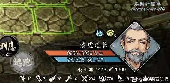 在主線劇情到名劍山莊,筆者打敗一堆小卡拉米後,一堆大佬都在小房間談話,談完話之後,因為靠著光頭和尚實力大增的筆者看著清虛老道包裡的好東西蠢蠢欲動,於是來了一把切磋,結果…竟然就直接打贏了,毫無壓力,開局可以看出,清虛老道攻防非常高,筆者攻擊800多,防禦好像也就1000出頭左右,差距非常明顯