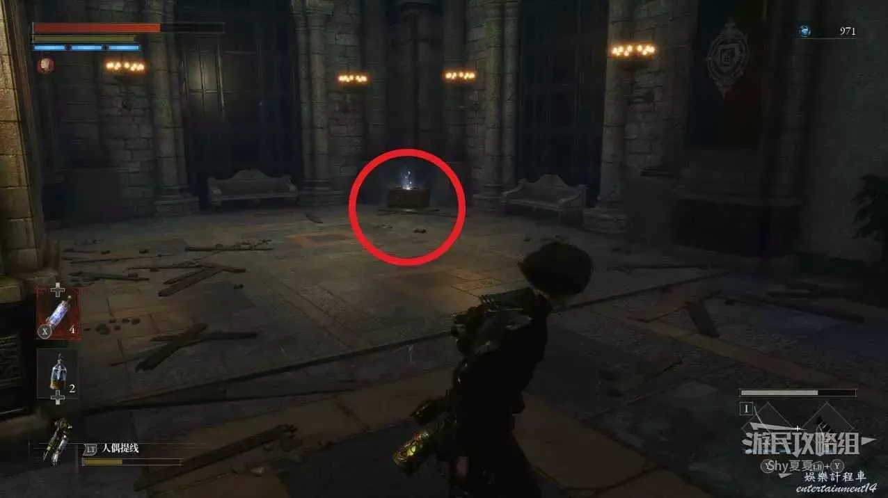 第二章-極樂大道入口,一個樓梯的轉角出,有一隻狗和兩個敵人,擊敗後,盡頭的寶箱可以獲得。