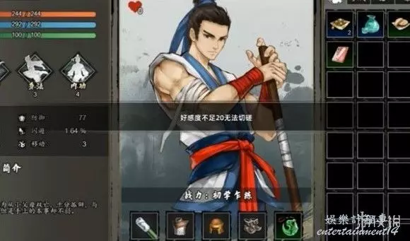 2、與他切磋發現需要20好感度,不然任務很難完成,建議整點他喜歡的東西送他。