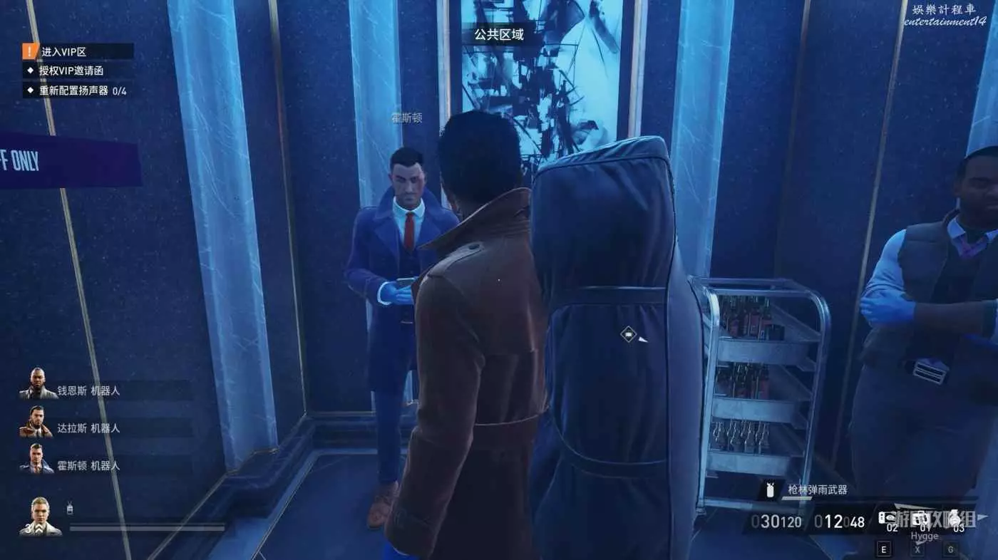 例如關卡搖動搖籃中的藍色鑰匙卡,在進入VIP區域後只要等左側高處的攝像頭移開,我們就可以從旁邊的警衛背後偷到該鑰匙卡。