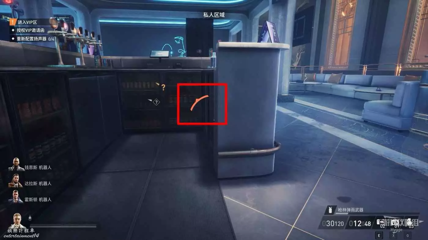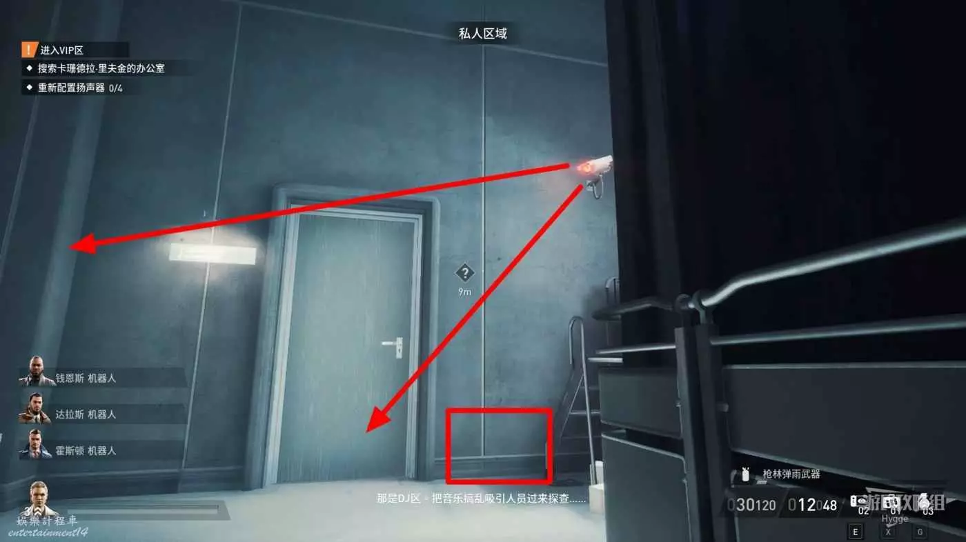 按下滑鼠滾輪除了可以命令平民趴下之外,還能夠標記警衛和攝像頭,這樣我們就可以穿牆觀察到目標的動向了。