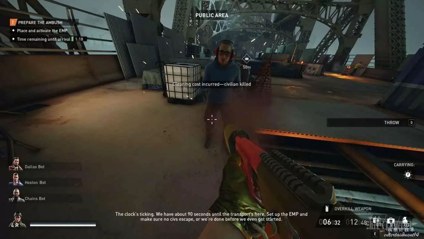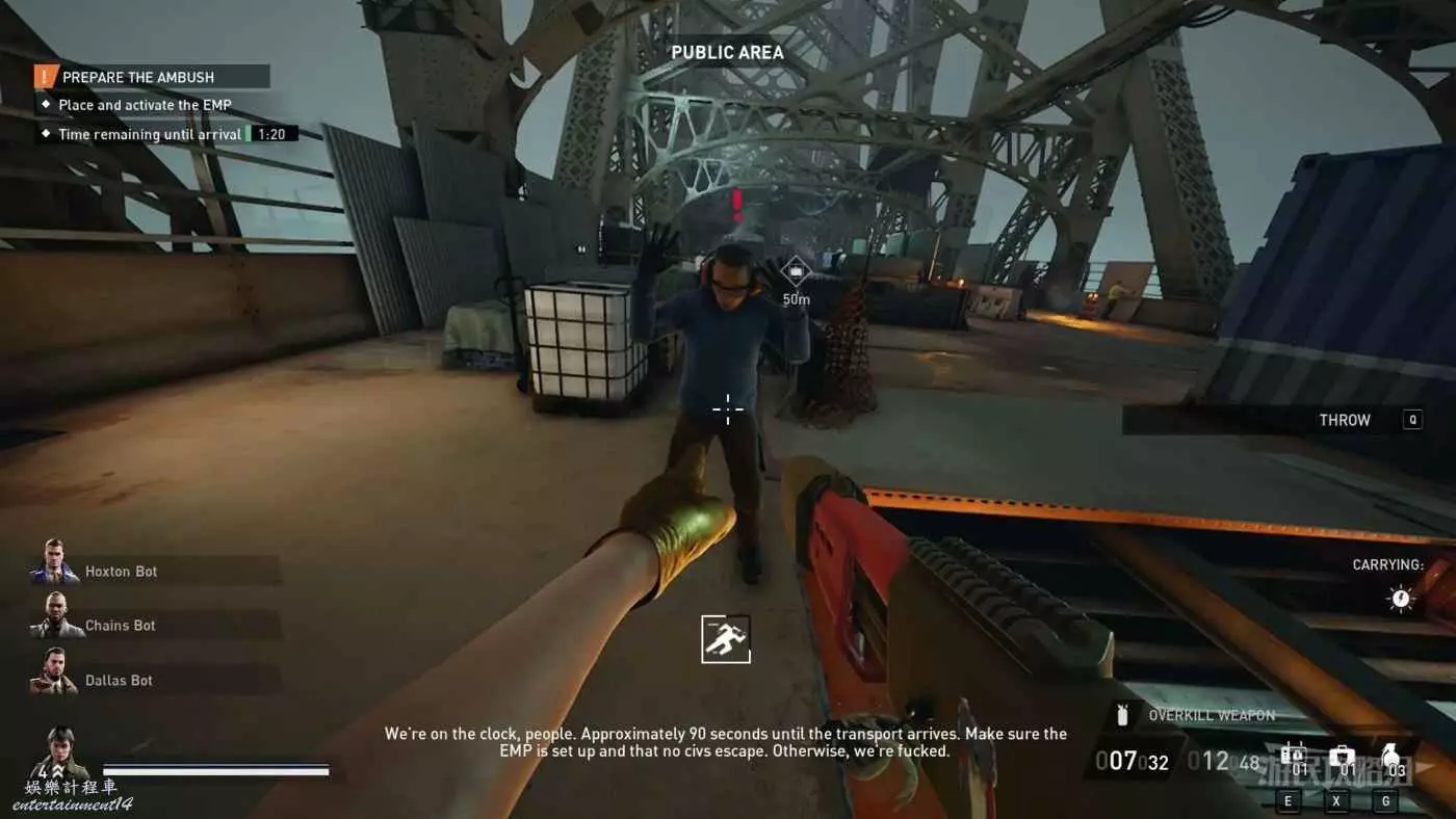 劫薪日 3 (Payday 3) 控制平民按鍵介紹 21 9 月 2023-09-21 廣告 作者:瑞破受氣包 來源:遊民星空 靠近並瞄準平民後,按【F鍵】可以綁住平民雙手或使用人肉盾牌。 瞄準平民,點按滑鼠中鍵(滾輪)即可讓平民趴下,不用靠近平民或按F鍵做出任何動作。 注意不要點滑鼠左鍵,否則會直接開槍。