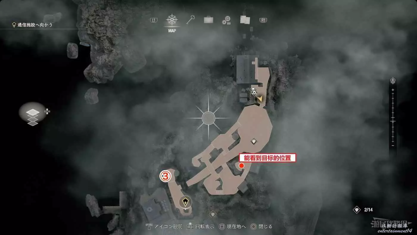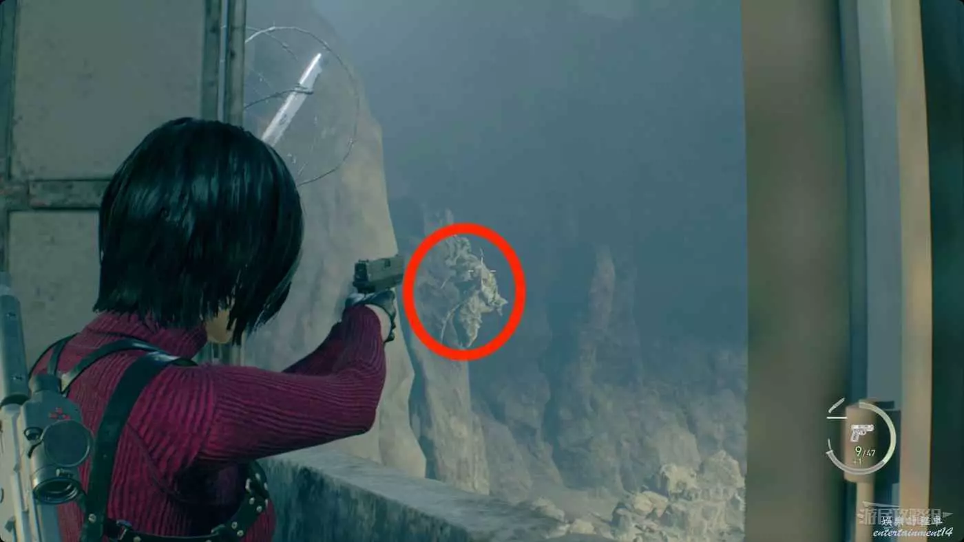 在跟隨劇情躲避敵人攻擊的地方可以找到第二隻隱形蟲,在地圖外的瞭望塔上,用鉤繩槍將其擊殺即可。