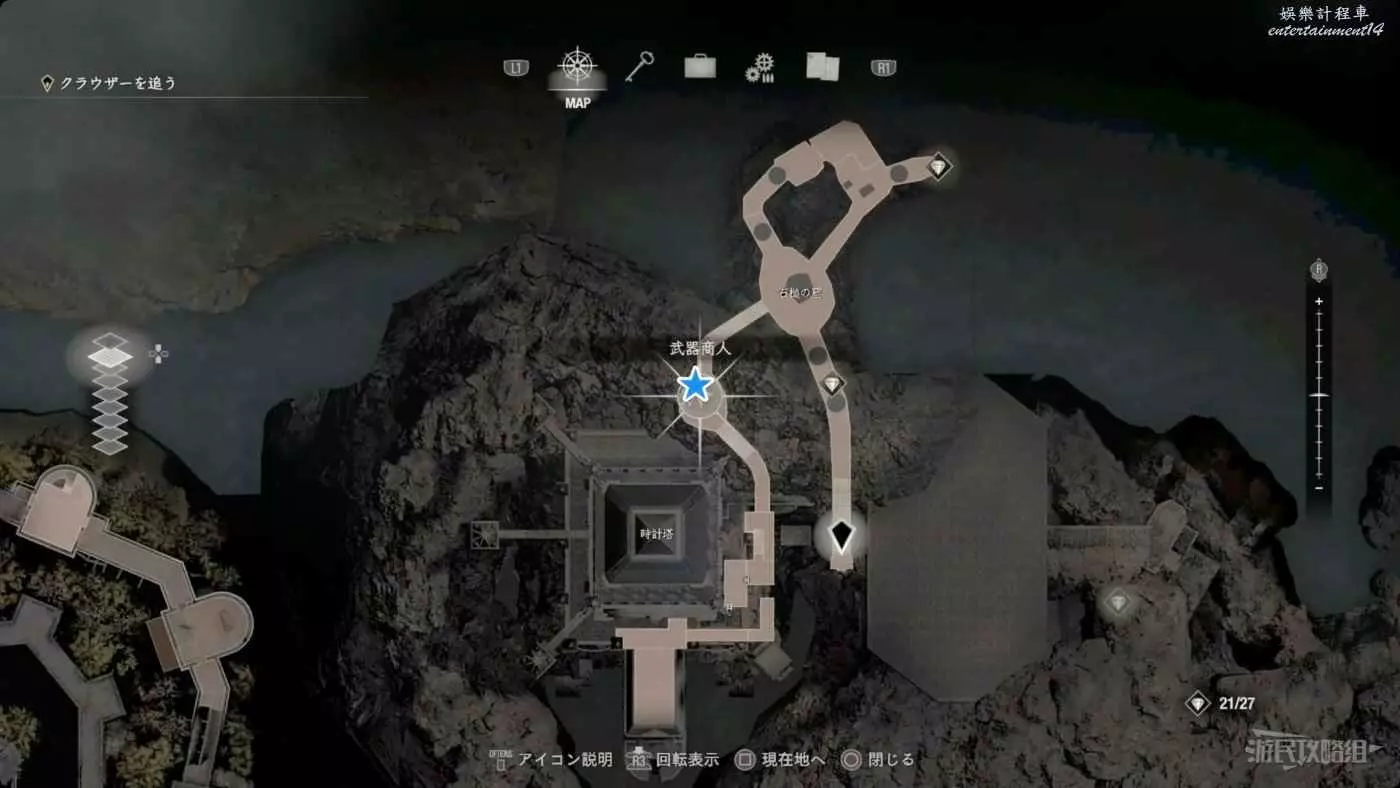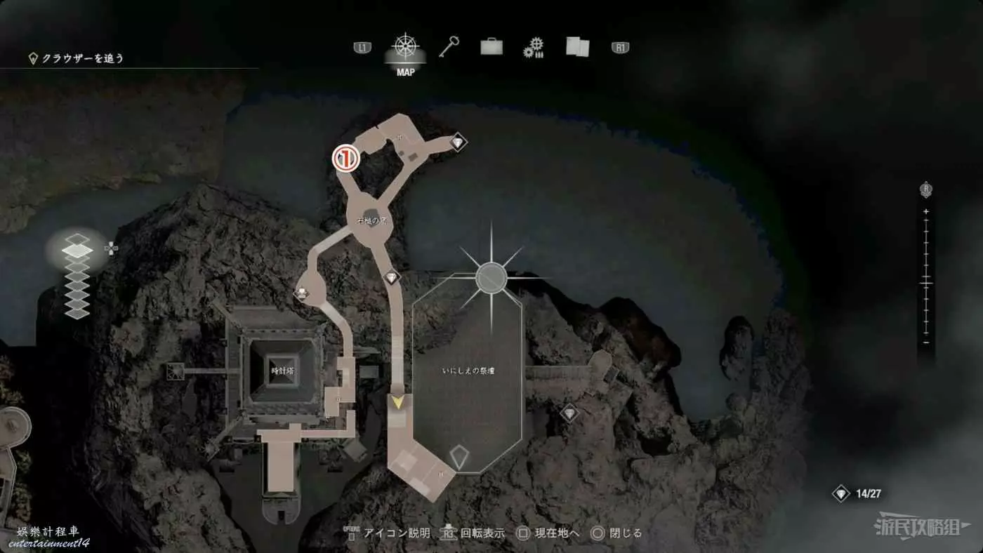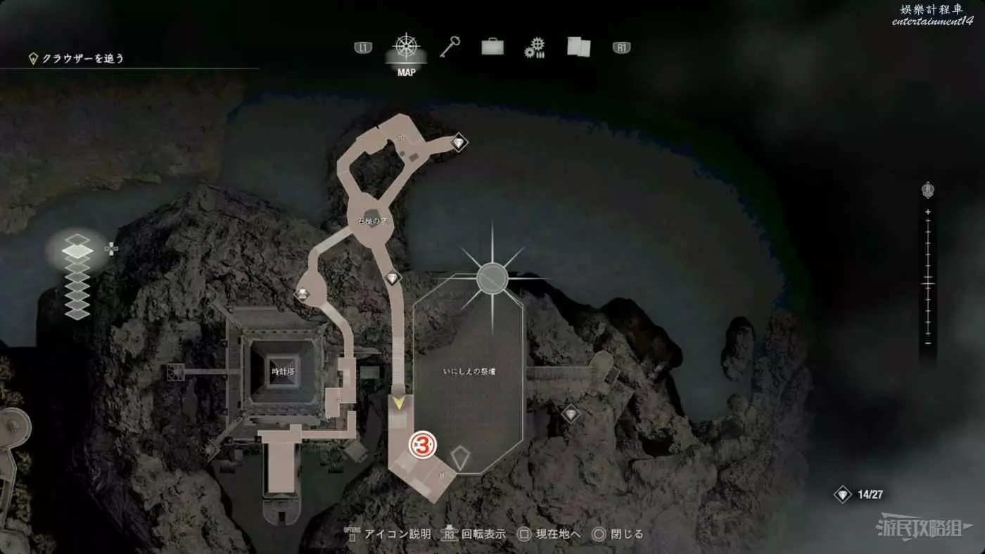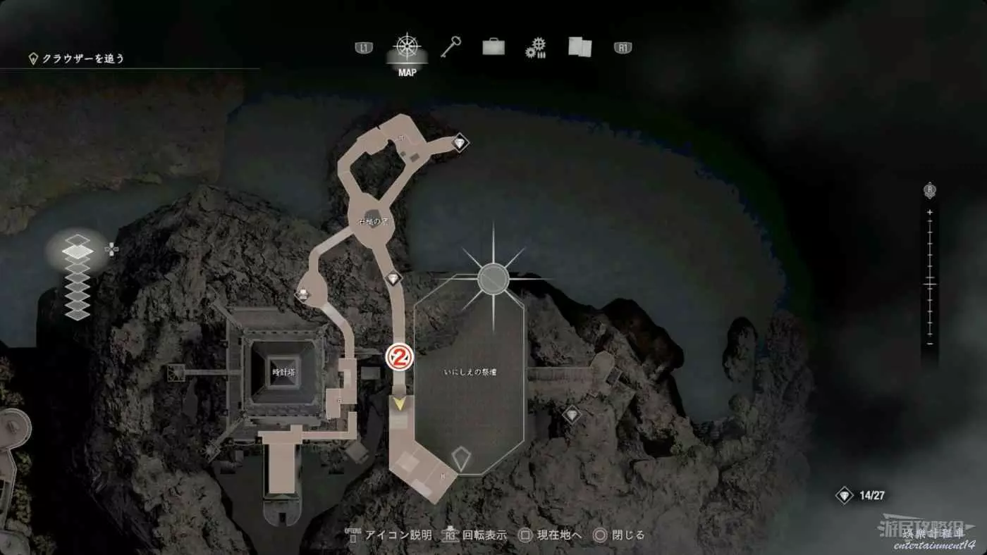 穿過中間位置,進入祭壇側面的建築,一邊擊敗所有敵人一邊探索,就在房檐上可以找到。
