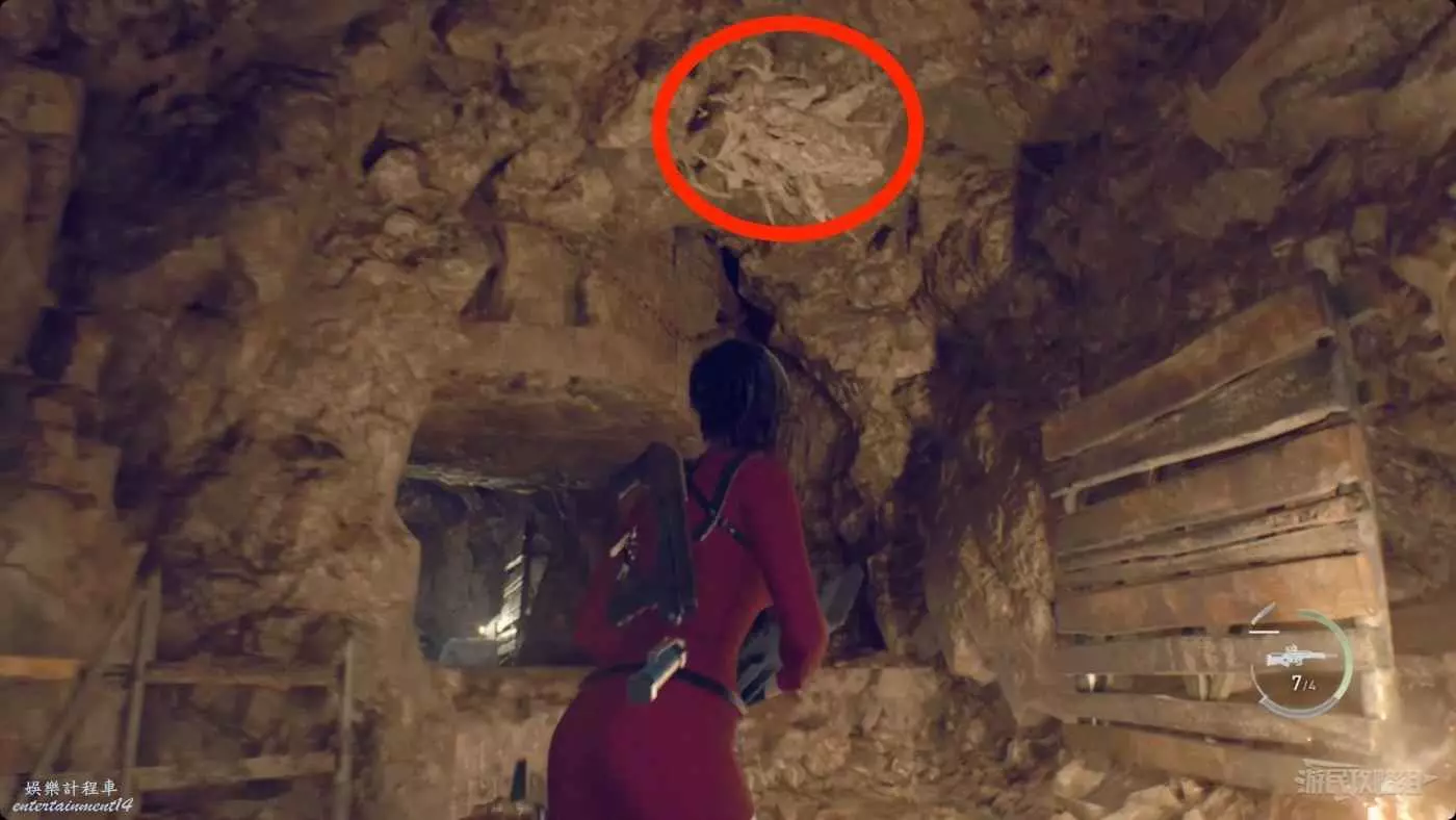 位於地洞陷阱盡頭的中間位置,在頭頂,用生物傳感鏡比較好找。