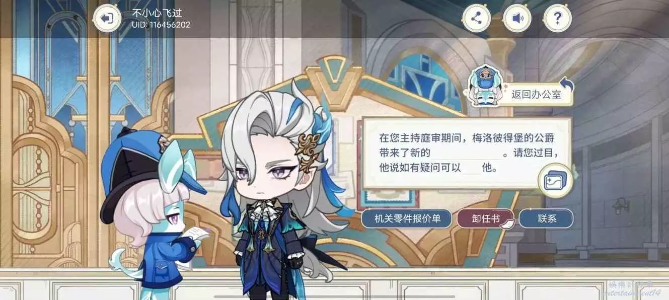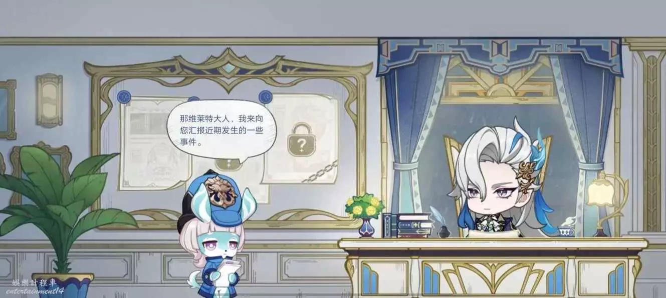 進入網頁活動介面,我們會注意到那維萊特正在接受沫芒宮的美露莘塞德娜的工作彙報: