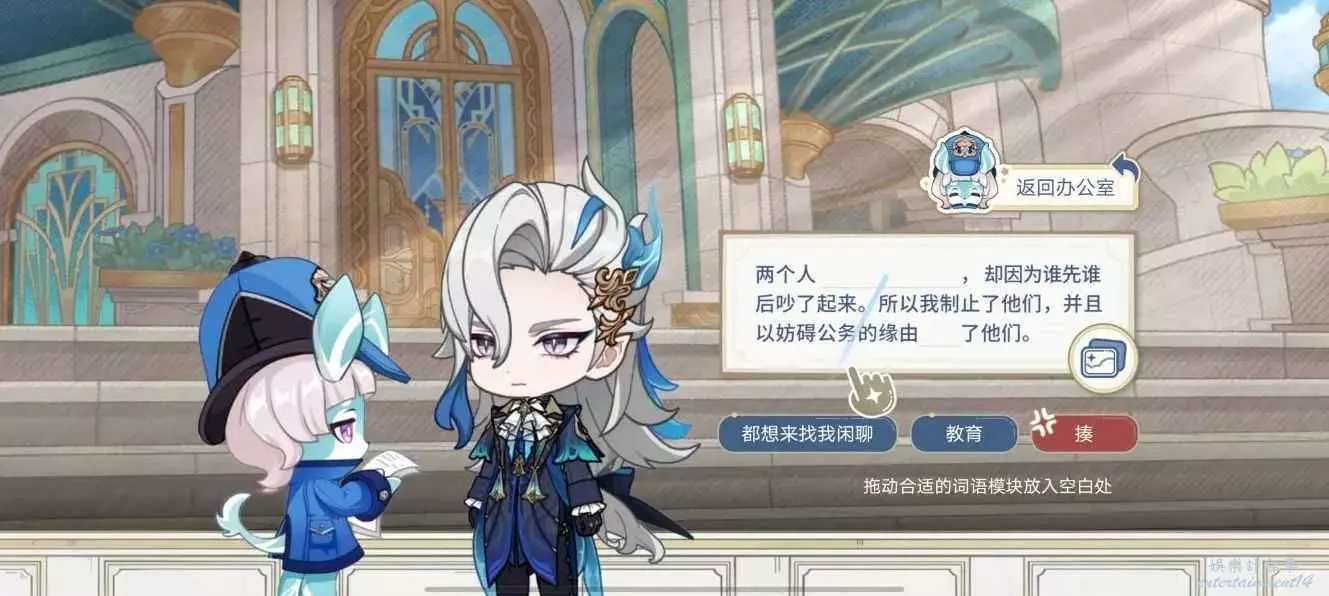 第一個空格選擇“都想來找我閒聊”,第二個空格選擇“教育”,達成【教育】結局;