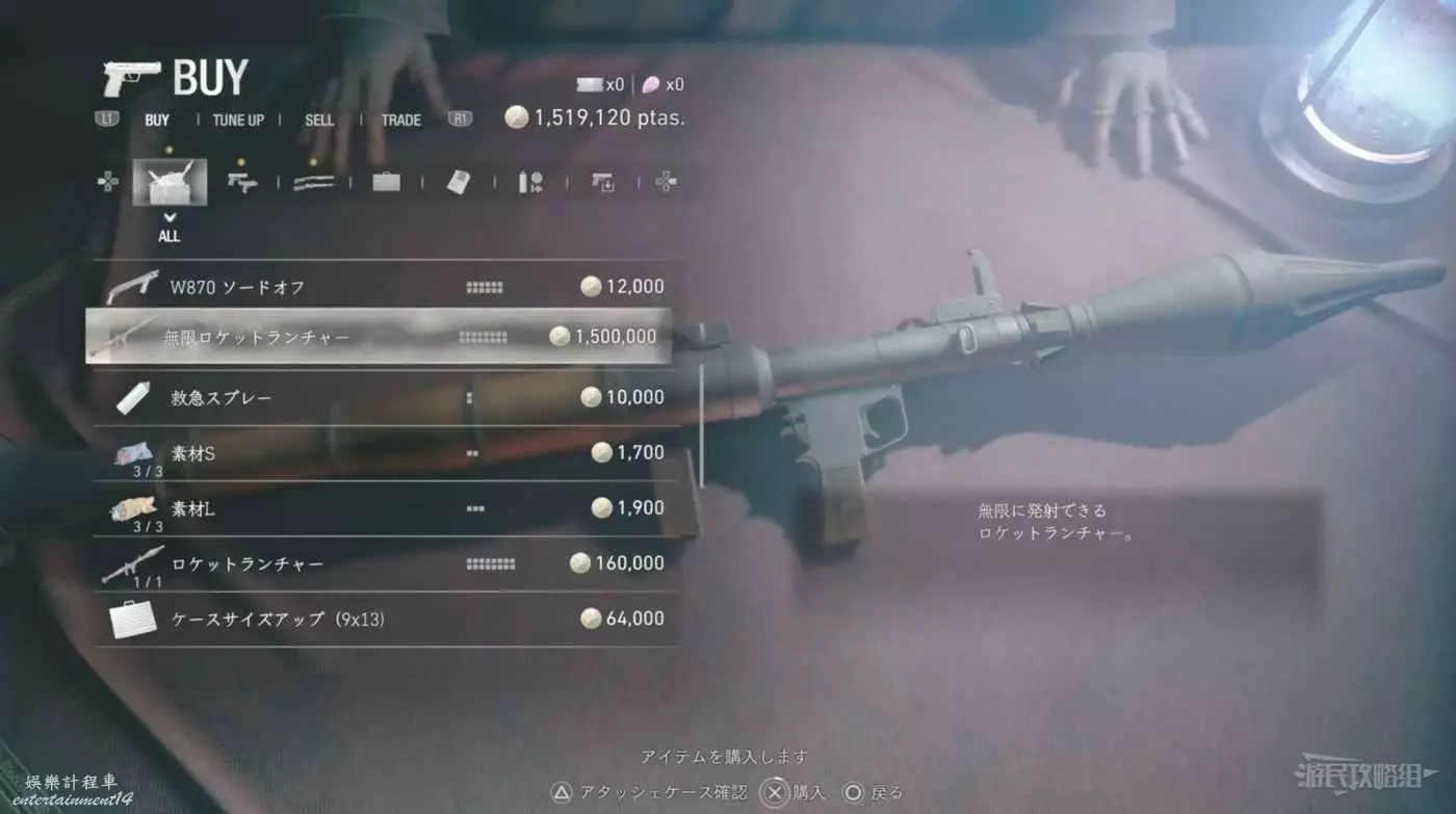 讀取通關存檔開始新遊戲,可以購買無限彈藥火箭筒,完成所有懸賞任務、通關專家難度也可以獲得無限彈藥武器。
