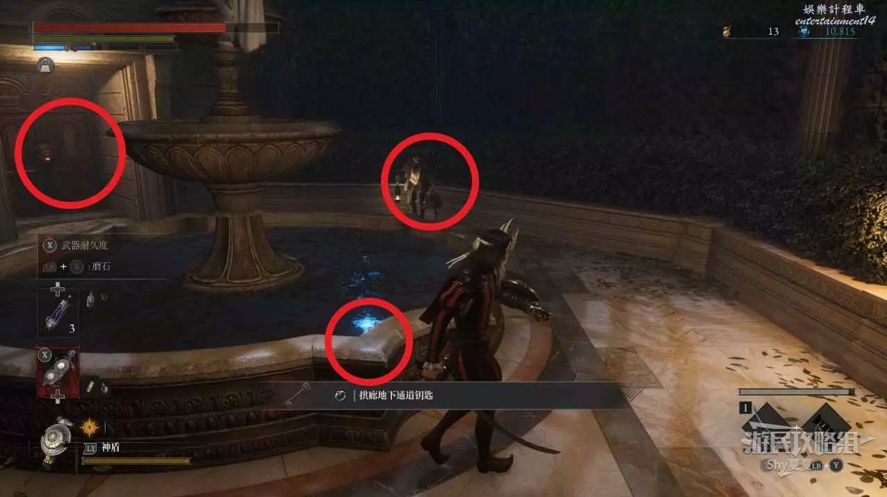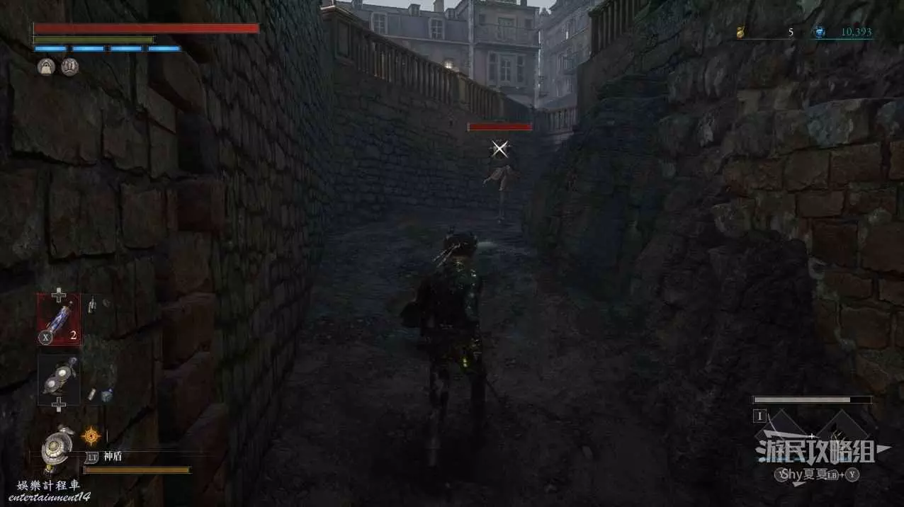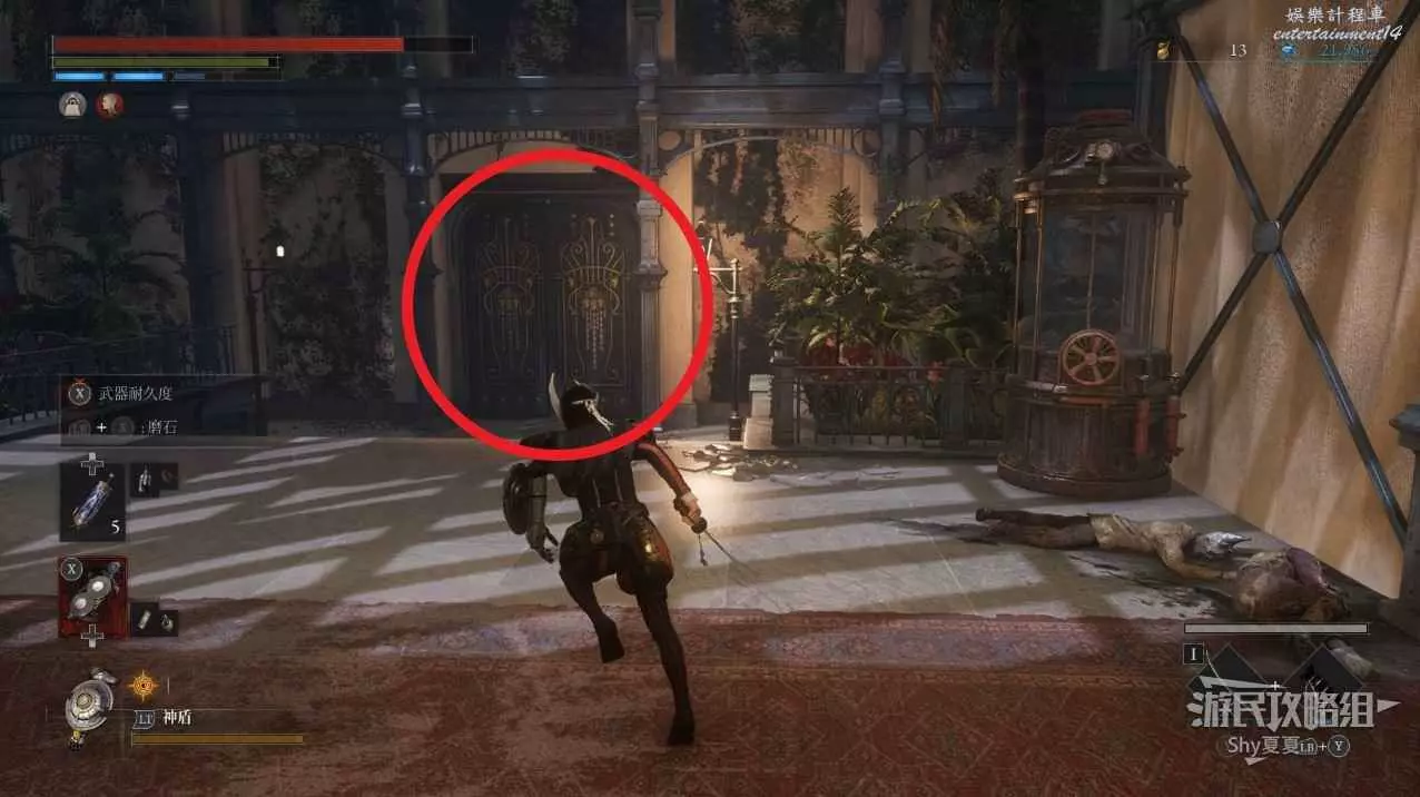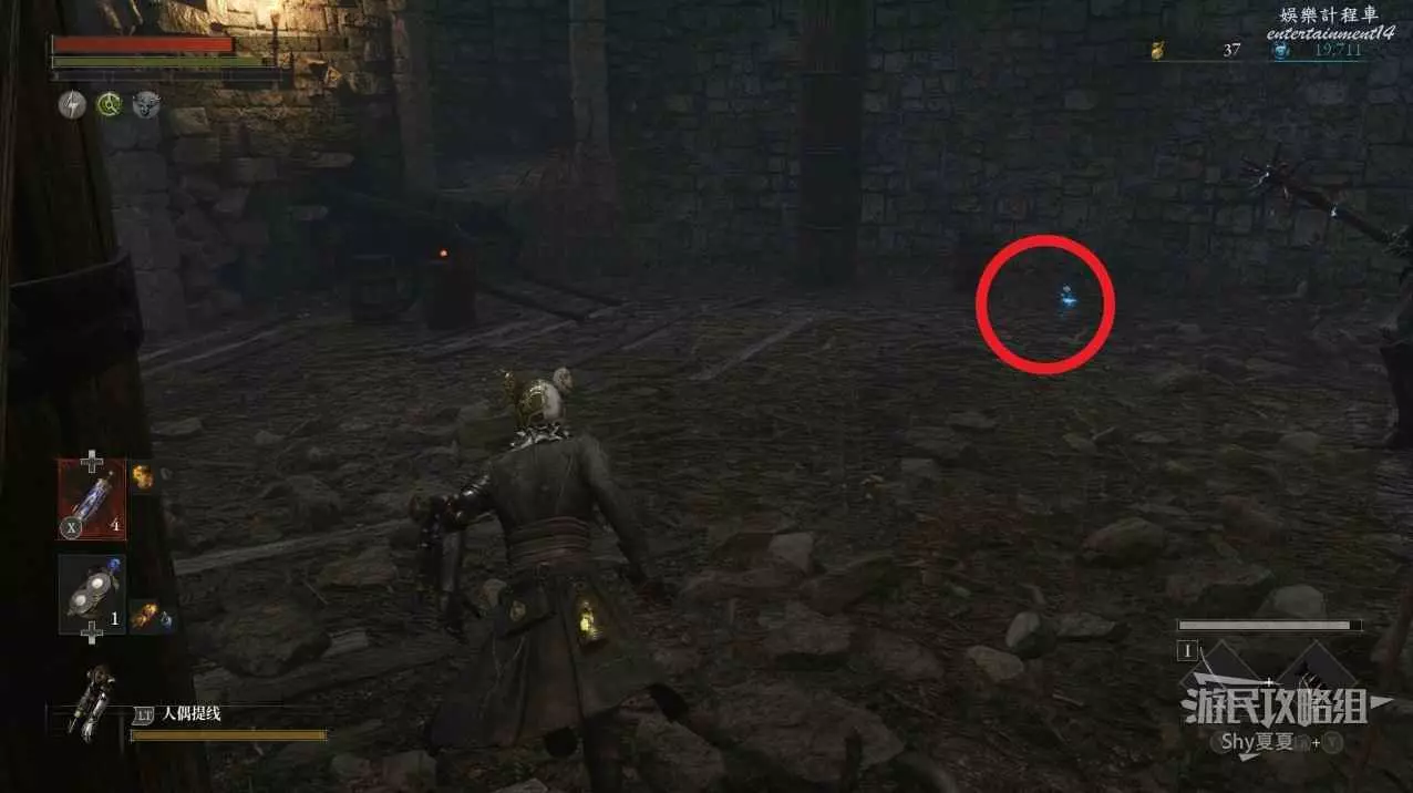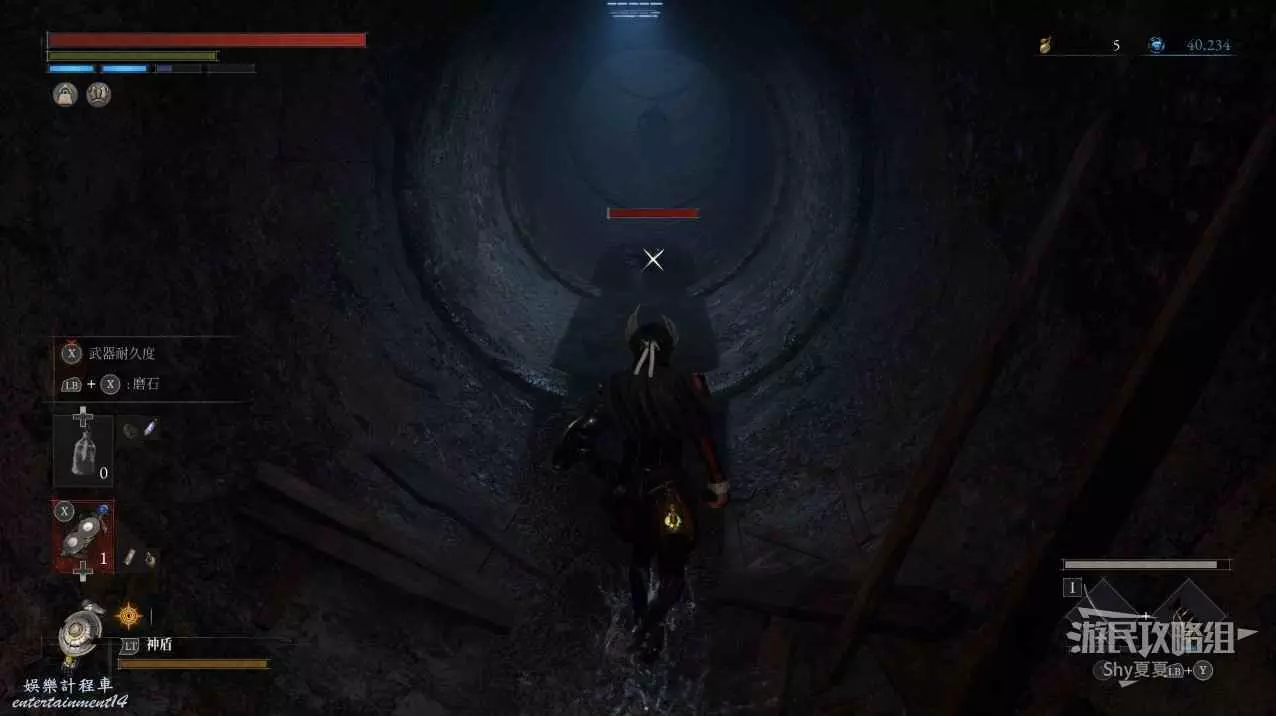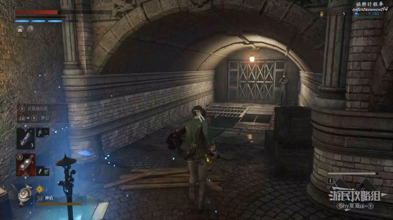 出來後,把場景的三個女僕人偶都擊殺掉,轉身可以打開涵洞的捷徑門,就是Stargazer,狀態不好的話可以補給一下繼續前進,門前可以拾取【新月月光石】。
