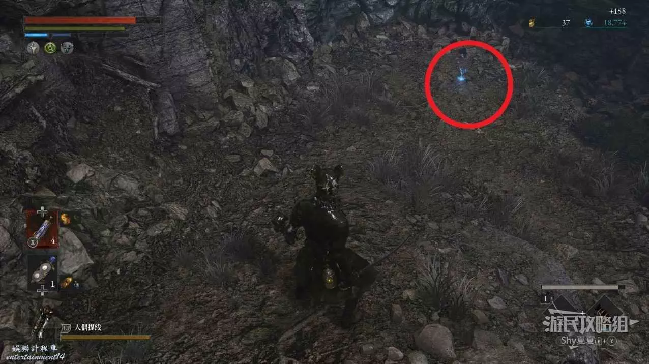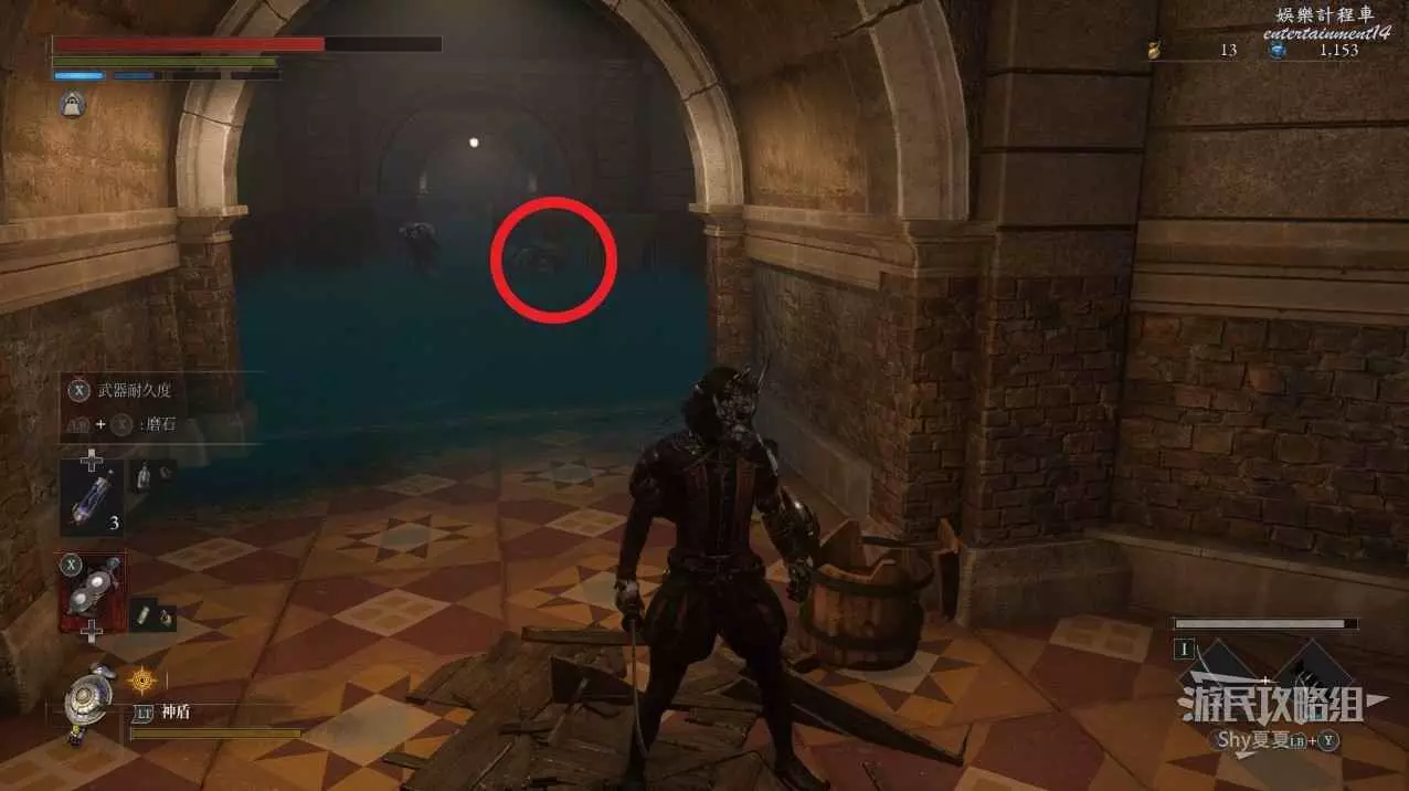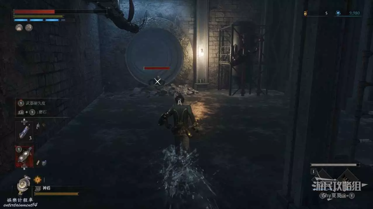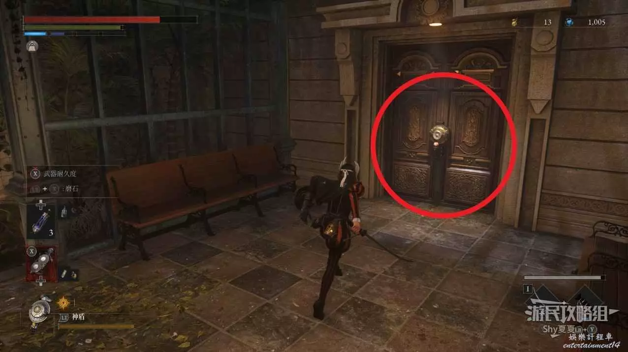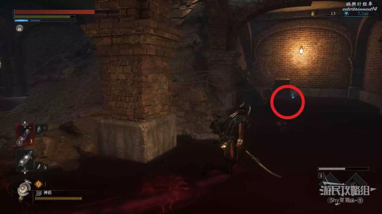 出來後,把場景的三個女僕人偶都擊殺掉,轉身可以打開涵洞的捷徑門,就是Stargazer,狀態不好的話可以補給一下繼續前進,門前可以拾取【新月月光石】。