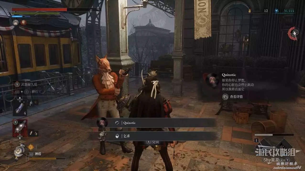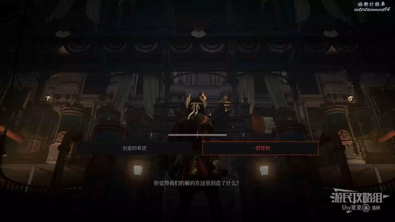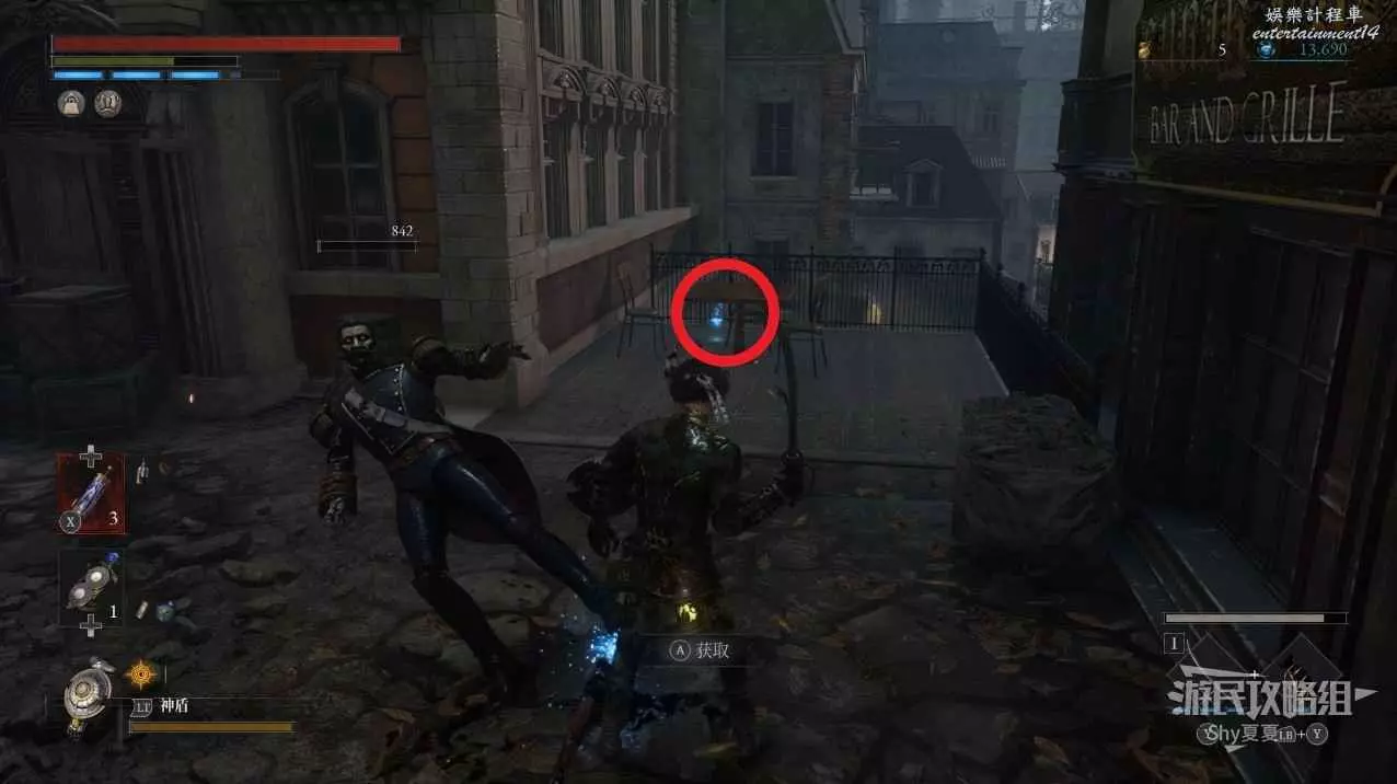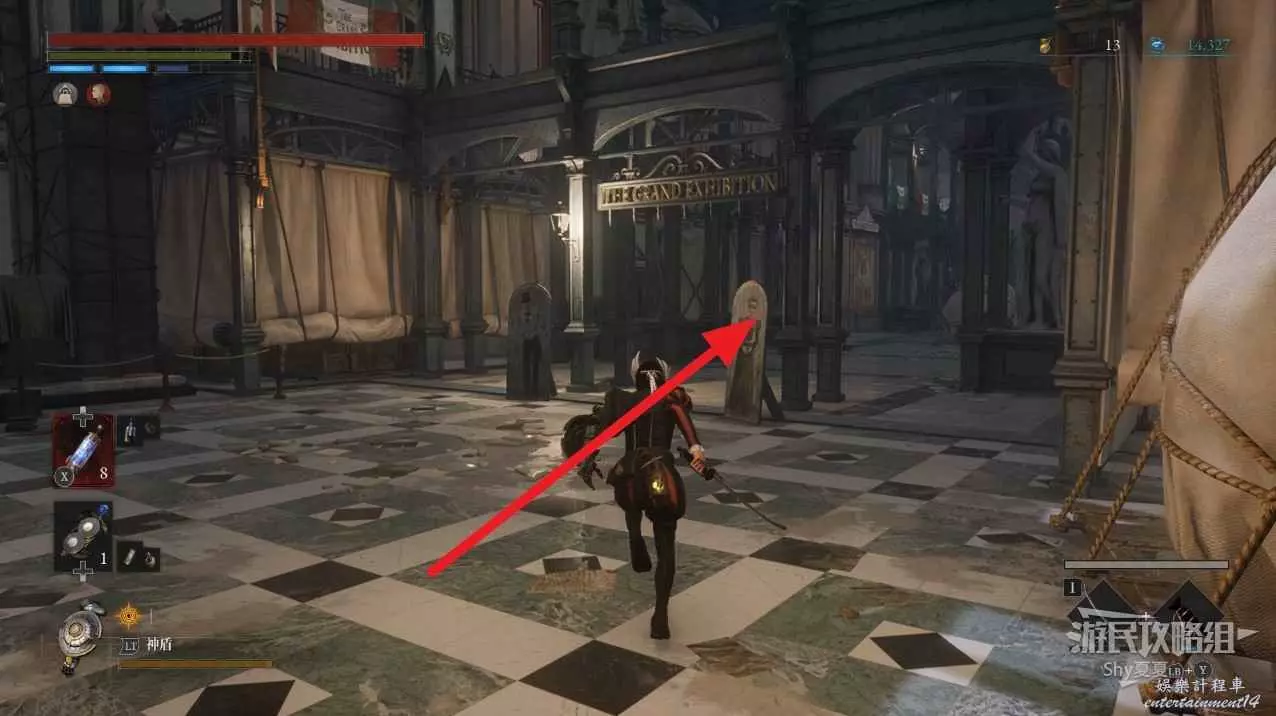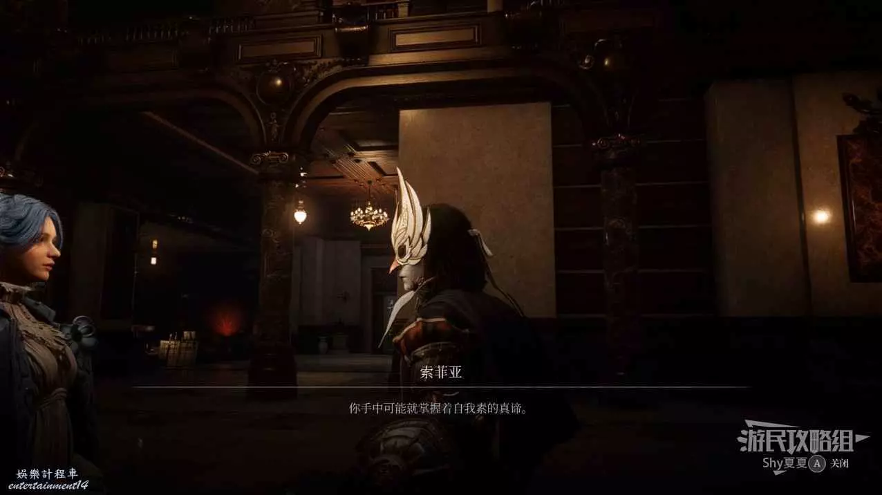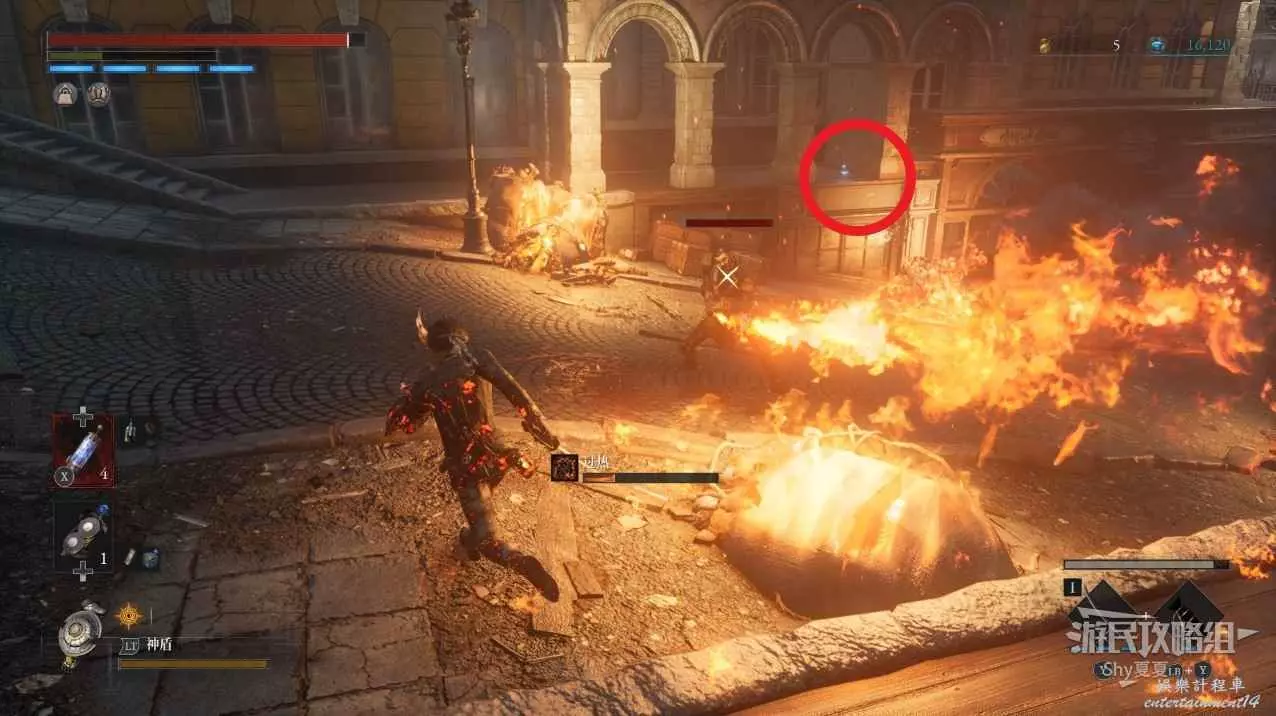 打開前方建築的大門,進入歌劇院,首先盡頭的門暫時無法打開,但是門口可以拾取【特殊淨化安瓶】,建議大家先走右側上樓,會遇到提線木偶,如果被其攻擊到會進入擾亂狀態,當擾亂條滿後會立即死亡,可以用【特殊淨化安瓶】接觸此狀態。一層的欄杆可以拾取【契約暗月月光石】。