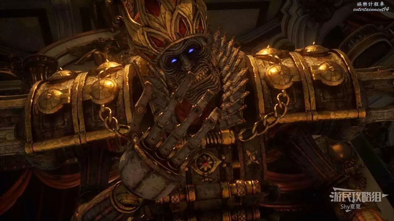 人偶之王是一個巨大的盔甲人偶,有兩個巨大的手臂,分為兩個階段,帶上NPC幽靈一起戰鬥,讓NPC抗傷害。