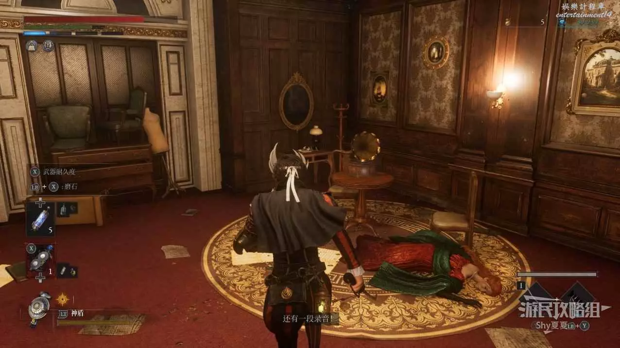 點亮後臺的Stargazer,返回阿德利娜的房間會看到屍體,任務完成獲得【紅衣女演員的吊墜】、【唱片-Fascination】。