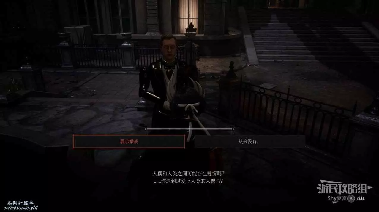離開屋子下樓梯右轉,會看到一個黑色連衣裙的人偶屍體,她就是朱利安要找的愛人,拾取【婚戒】。