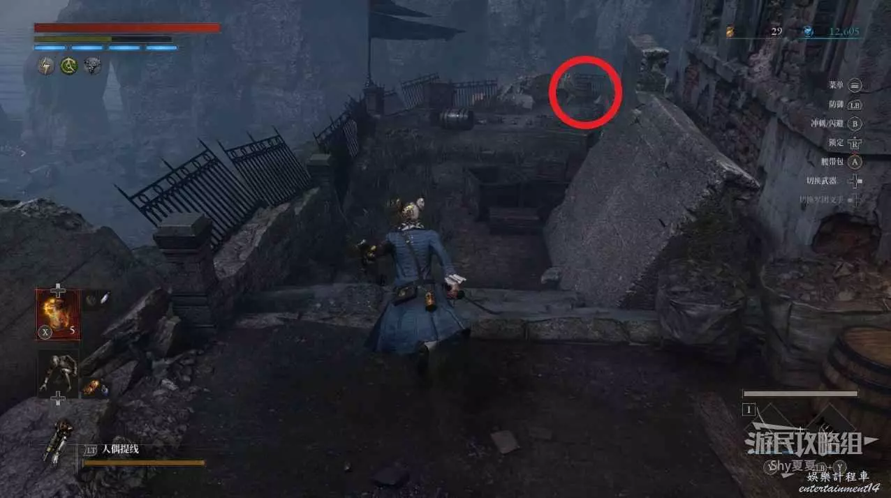 進入前方的塔後,一直上坡可以擊殺很多士兵人偶,難度並不大,頂部可以拾取【特殊淨化安瓶】。