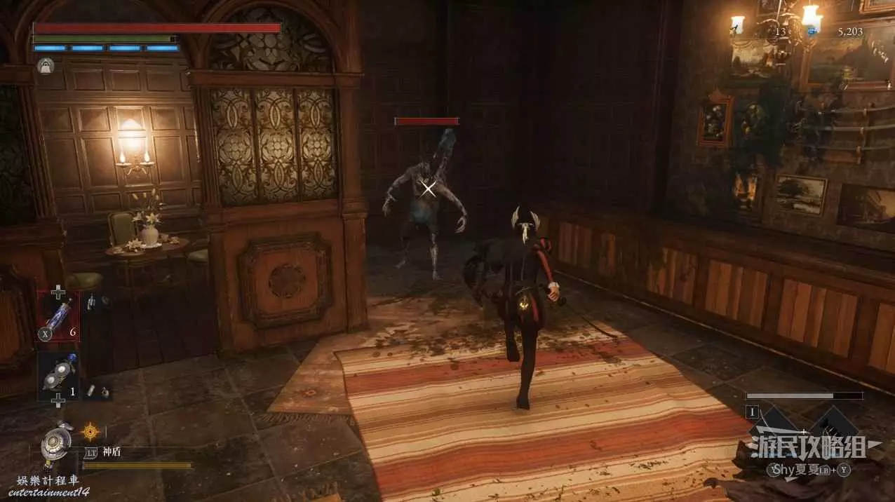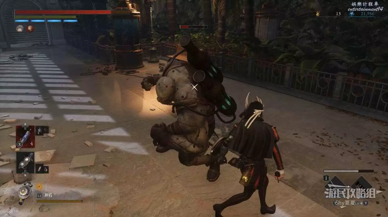 建議不要彈反,就一直閃避繞背就好,如果彈反了繞背會變得更難,他使用長武器的情況下繞背能夠輕鬆背刺將其擊敗。