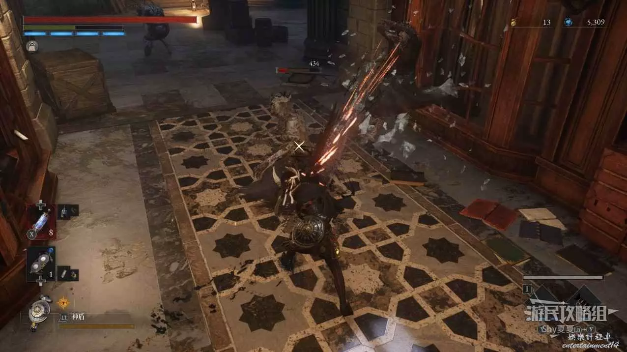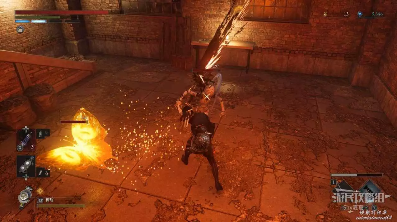 在這一階段要小心他的突刺,其餘時候讓NPC抗傷害,自己塗火屬性附魔進行輸出,很快就能將其打入第二階段,難點剛剛開始!