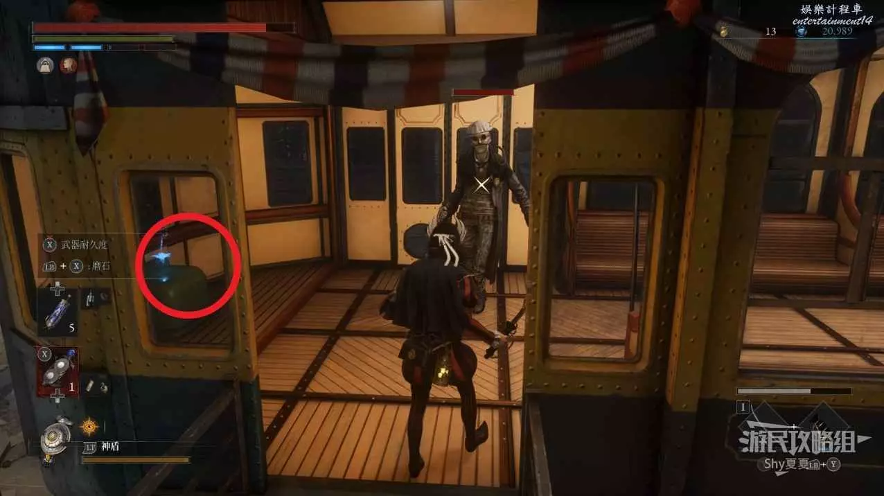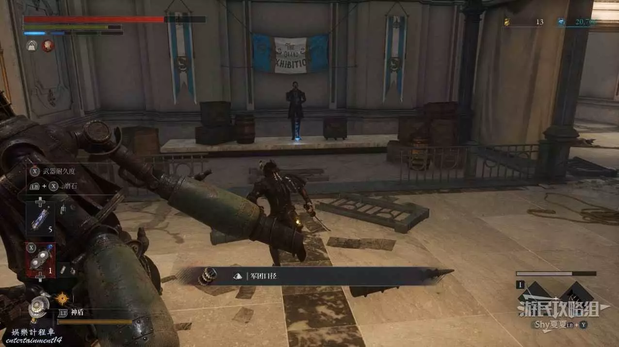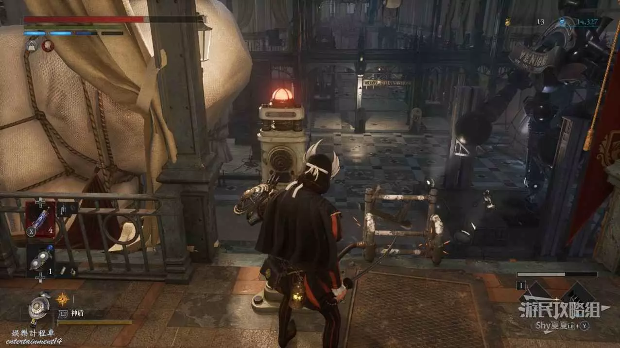 通過橋樑後,正前方會有一個道具,右側有一個LYB士兵人偶,在左邊的門內也會殺出一隻士兵人偶,全部擊殺後,拾取道具【吉米尼的鋼鐵守護】。