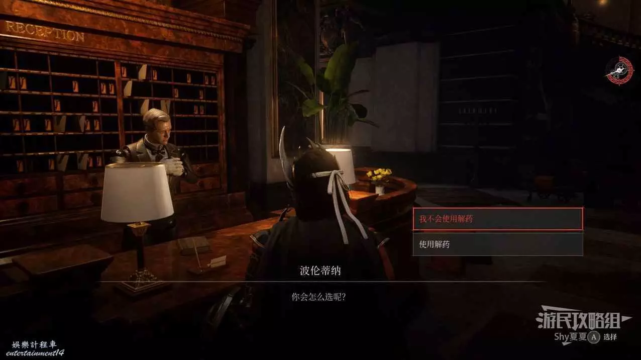 與【安東尼婭】對話,說謊選擇【當然】,說實話選擇【毫無蹤影】。