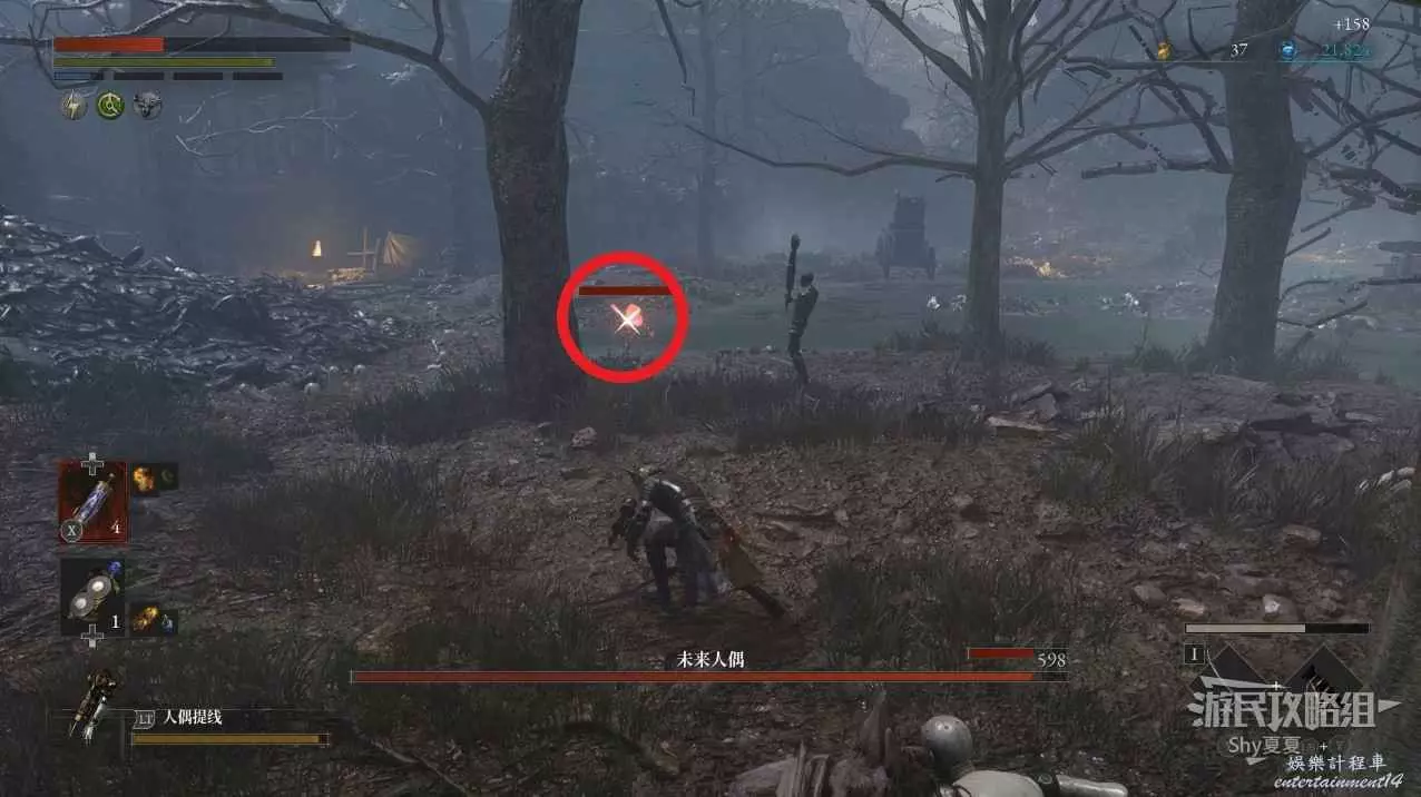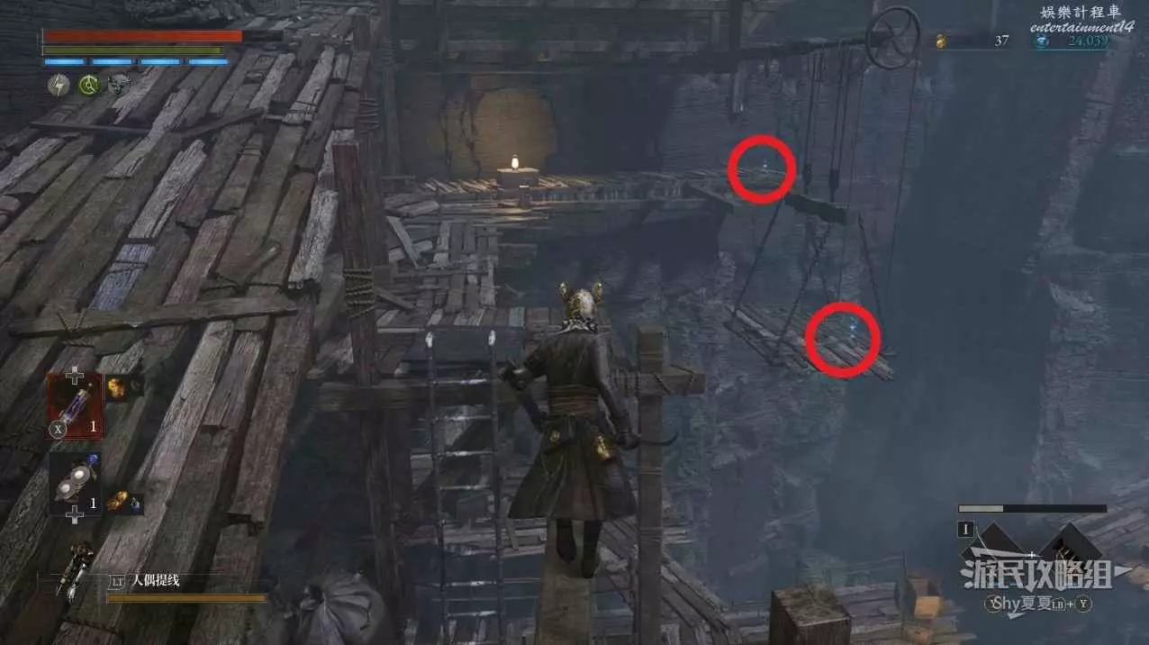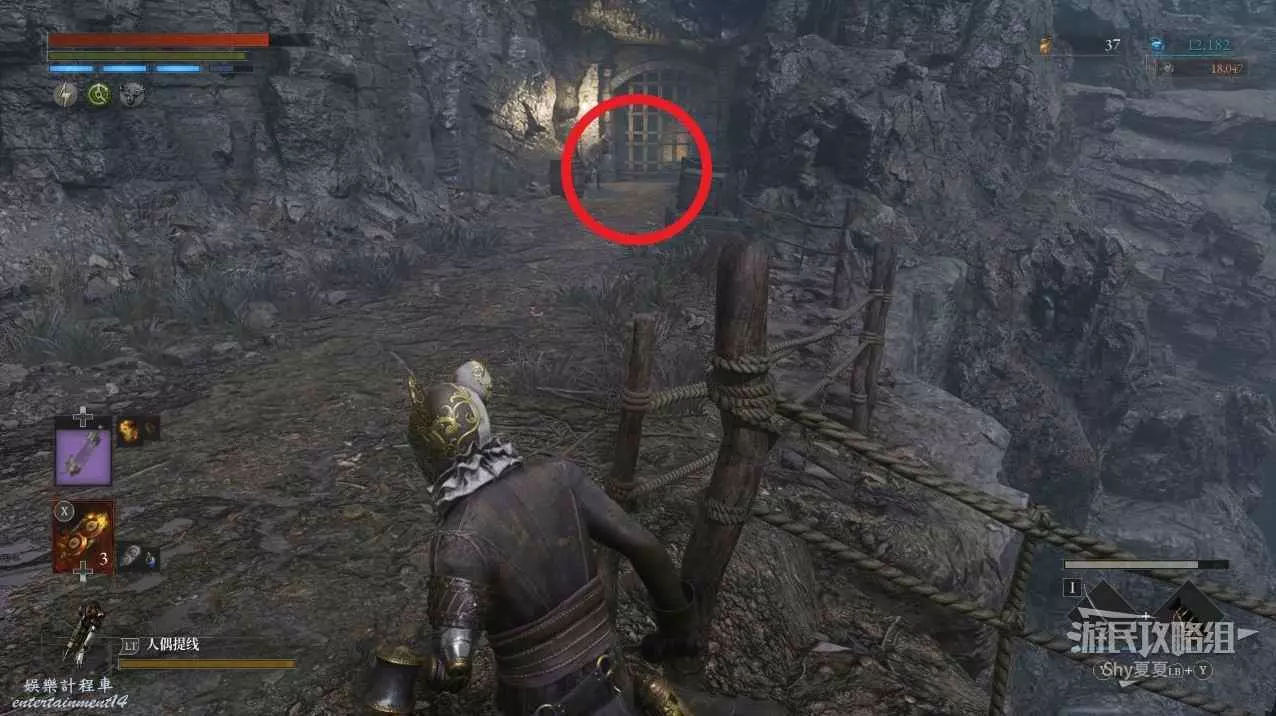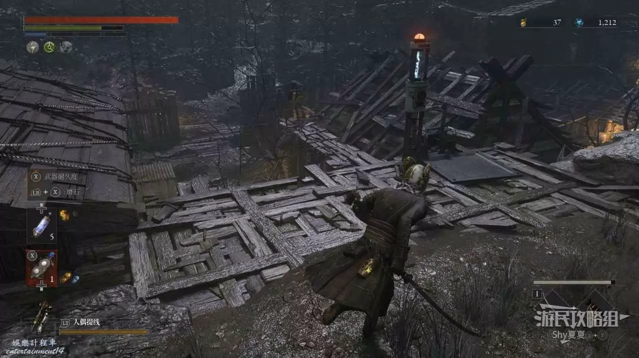 爬上高塔後,擊敗操作大炮的人偶,並且把大炮也毀了,拾取旁邊寶箱裡的【武器-活人偶斧】,然後就能去探索下面的沼澤了。